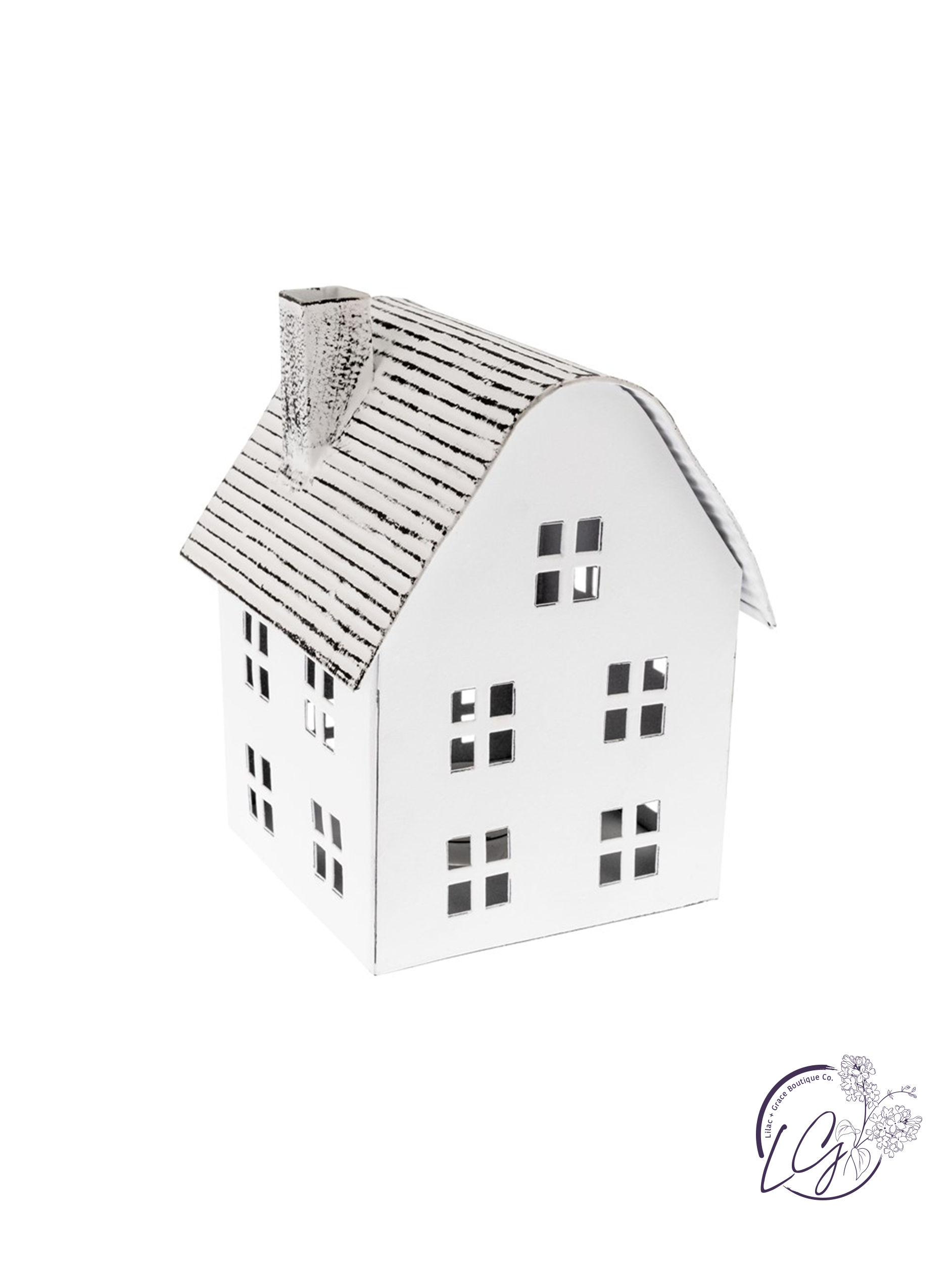 Welcome the holiday spirit with the Metal white barn! Its timeless metal gray finish and festive design brings cozy vibes to your home. Built to hold LED tea lights, it will create a warm and inviting atmosphere, perfect for celebrating the season with family and friends.