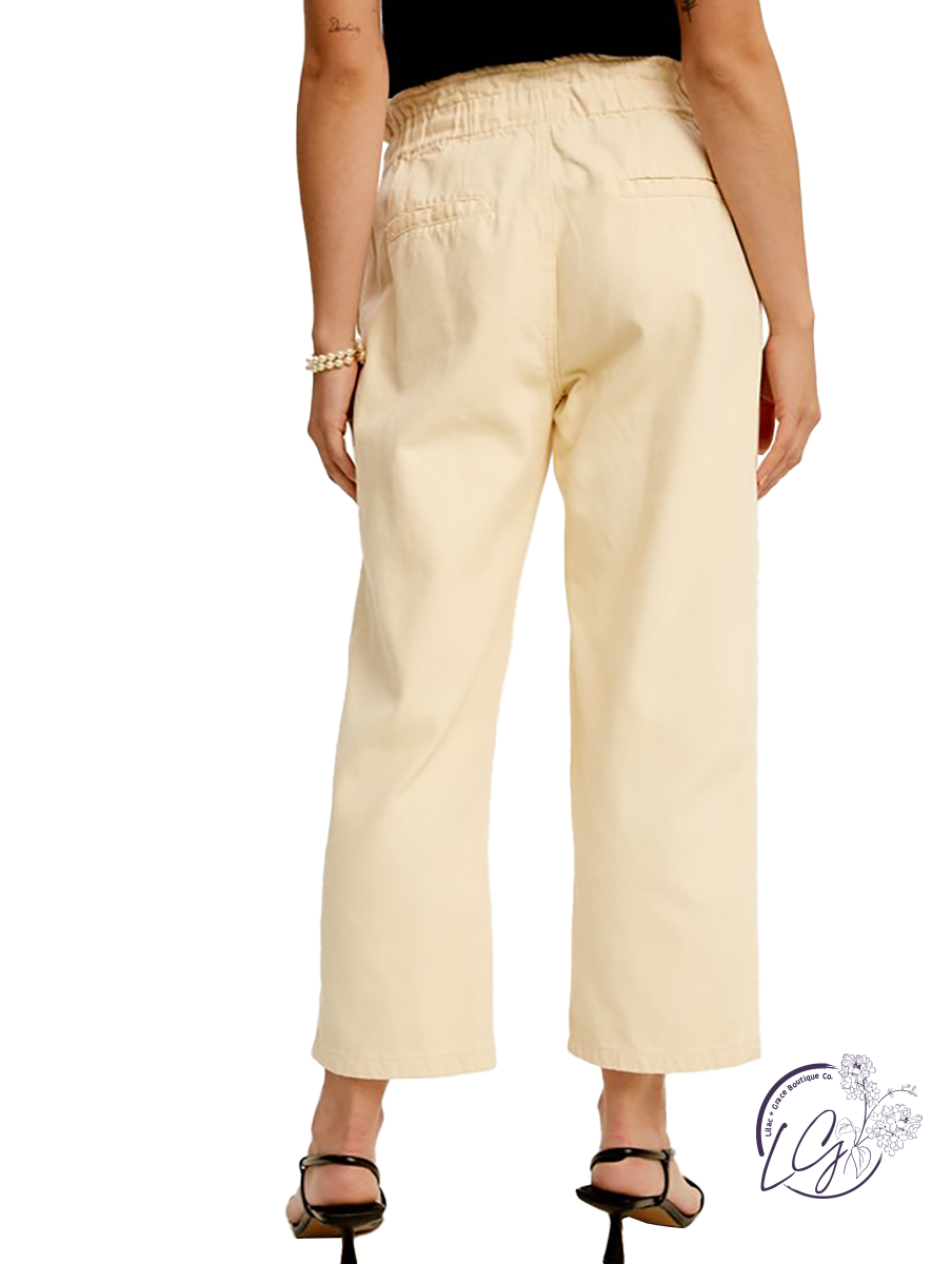 Get ready to strut your stuff in these Canvas denim-inspired boyfriend fit pants that have a playful ruffle detail at the top opening. A button and zipper closure at the center front make for an easy wear, and an adjustable waist strap adds a quirky touch. Keep your essentials close with the 4 pocket detailing and complete your look with the clean hem.