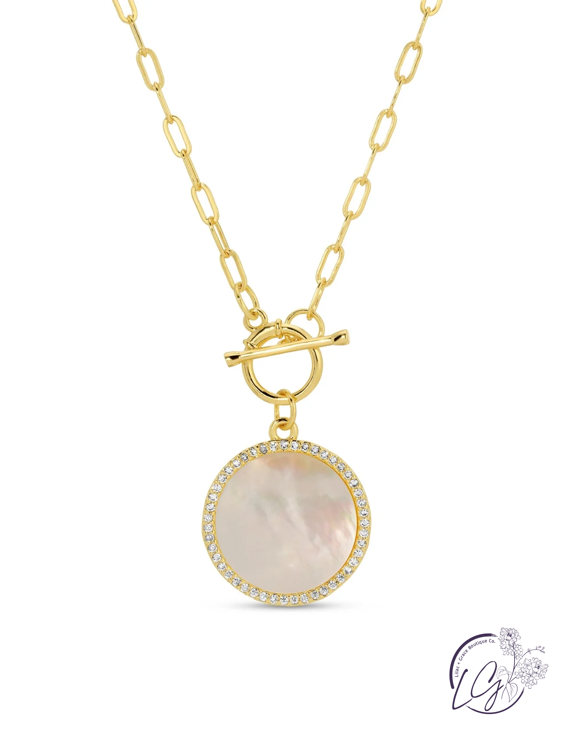 Mother of Pearl Pave Circle Toggle Necklace