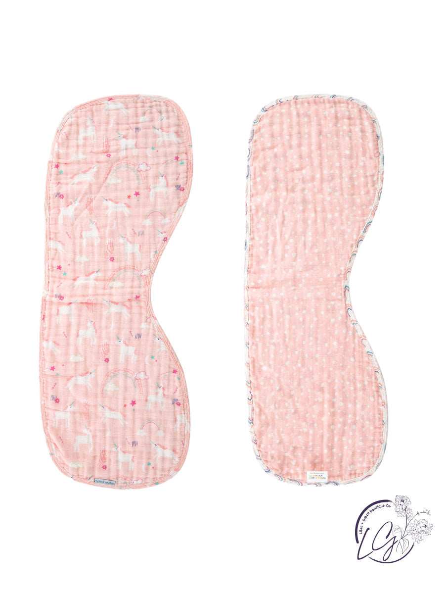 Our soft and absorbent burp cloth contours over the shoulder to keep you and your baby clean and dry. Drape over your shoulder for the ultimate comfort while helping babies eat, burp or snooze. The soft cotton material is soft on baby's face and gentle on parents clothes.