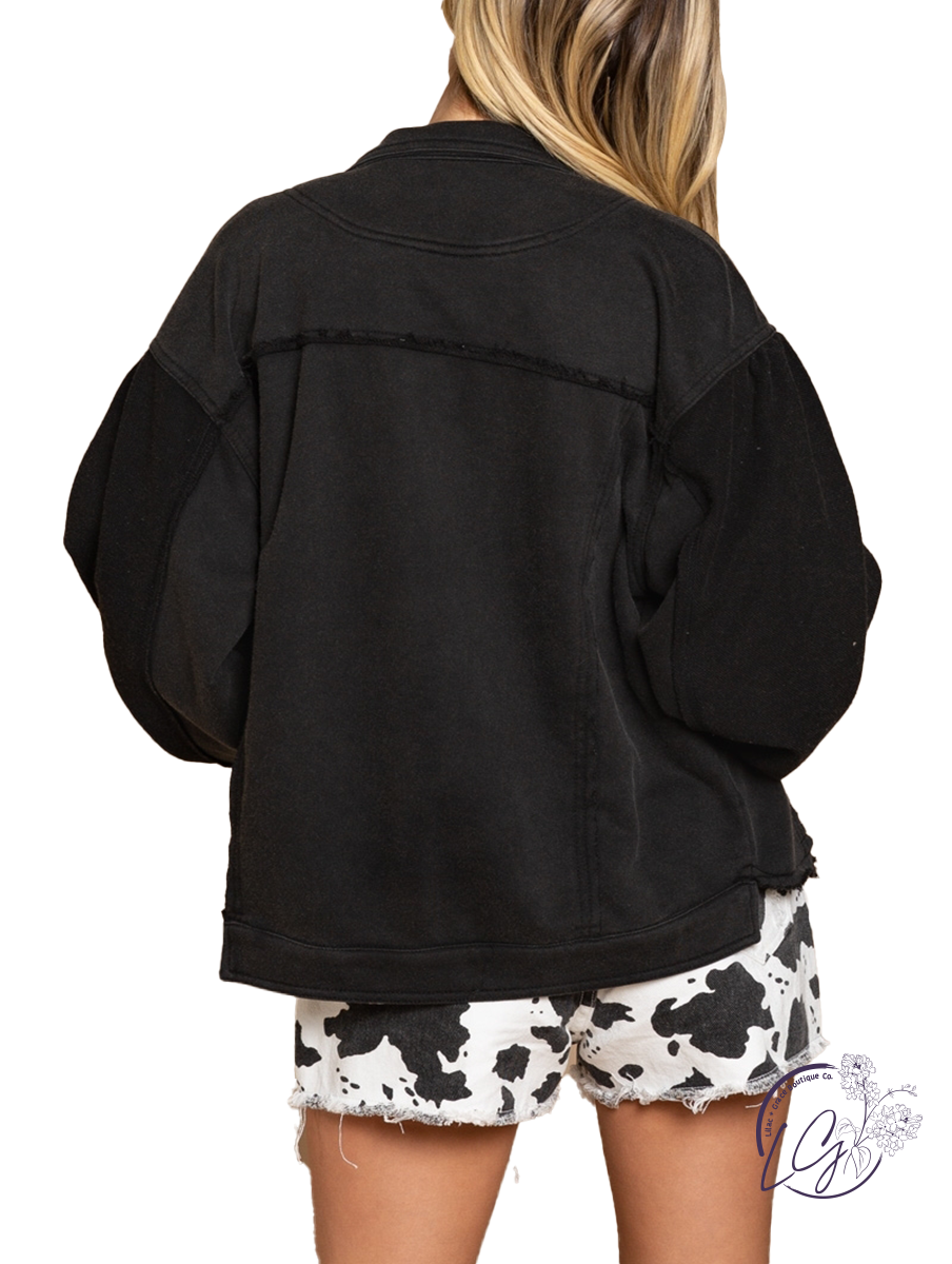Our "Obsessed With Colors" french terry jacket is another jacket you'll need for a great transitional piece. Designed in a relaxed fit with unique tie-dye color washing on the garment. A jacket with french terry fabrication that has been mixed with outer side and inner side to bring out the unique and fun vibe with using just one fabric. A jacket with collar and button closure on center front, raw seam detailing on the garment, and finished with raw edge on center front with clean band on back. Comes with long sleeve with a band and button closure on the side.
