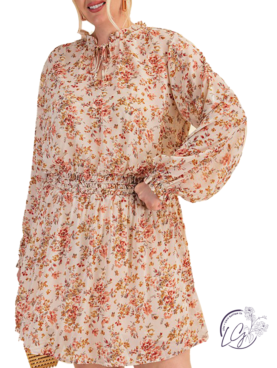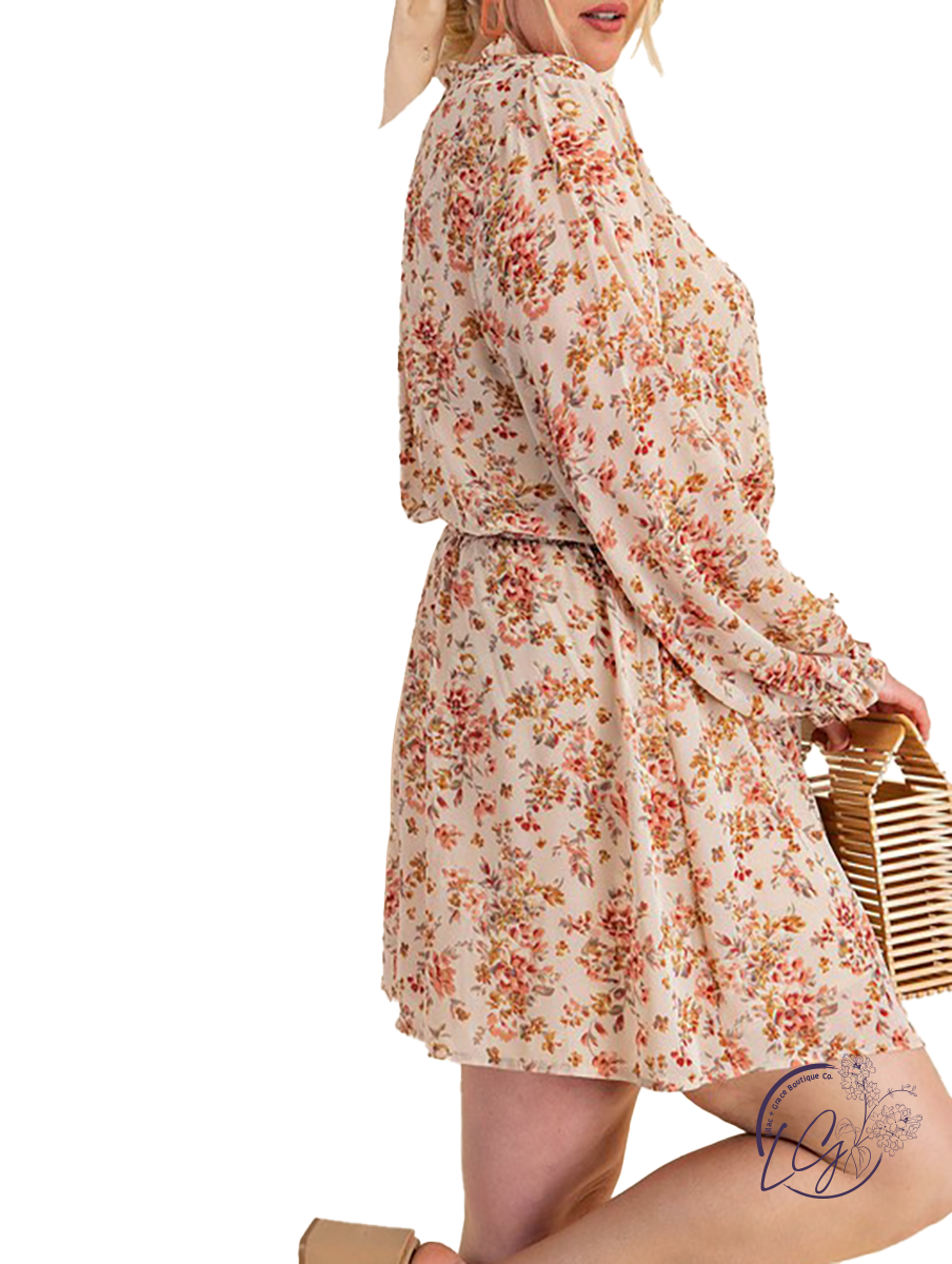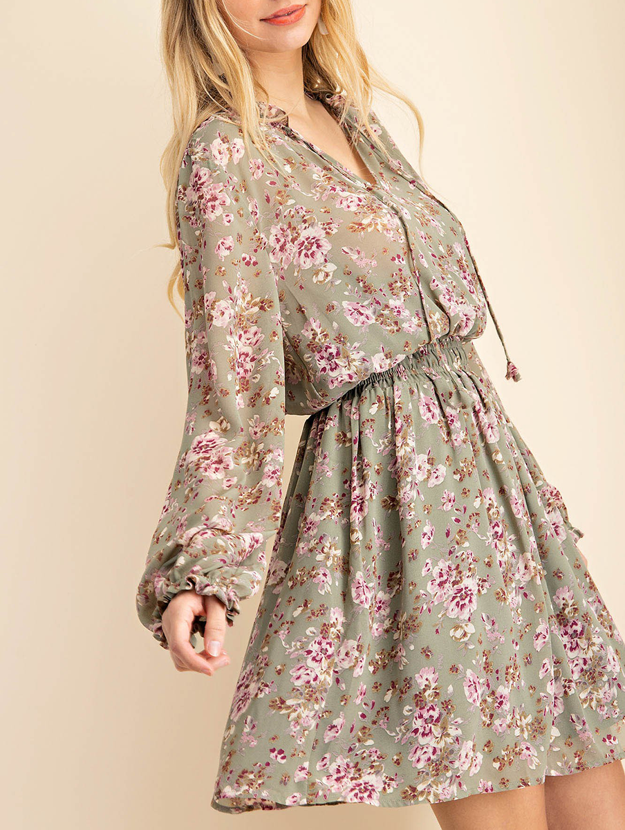 Chiffon Smocked Waist Long Sleeve Dress
