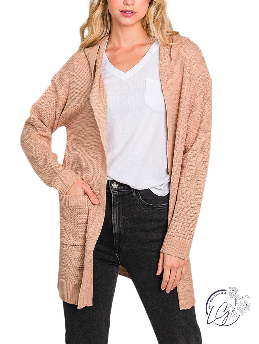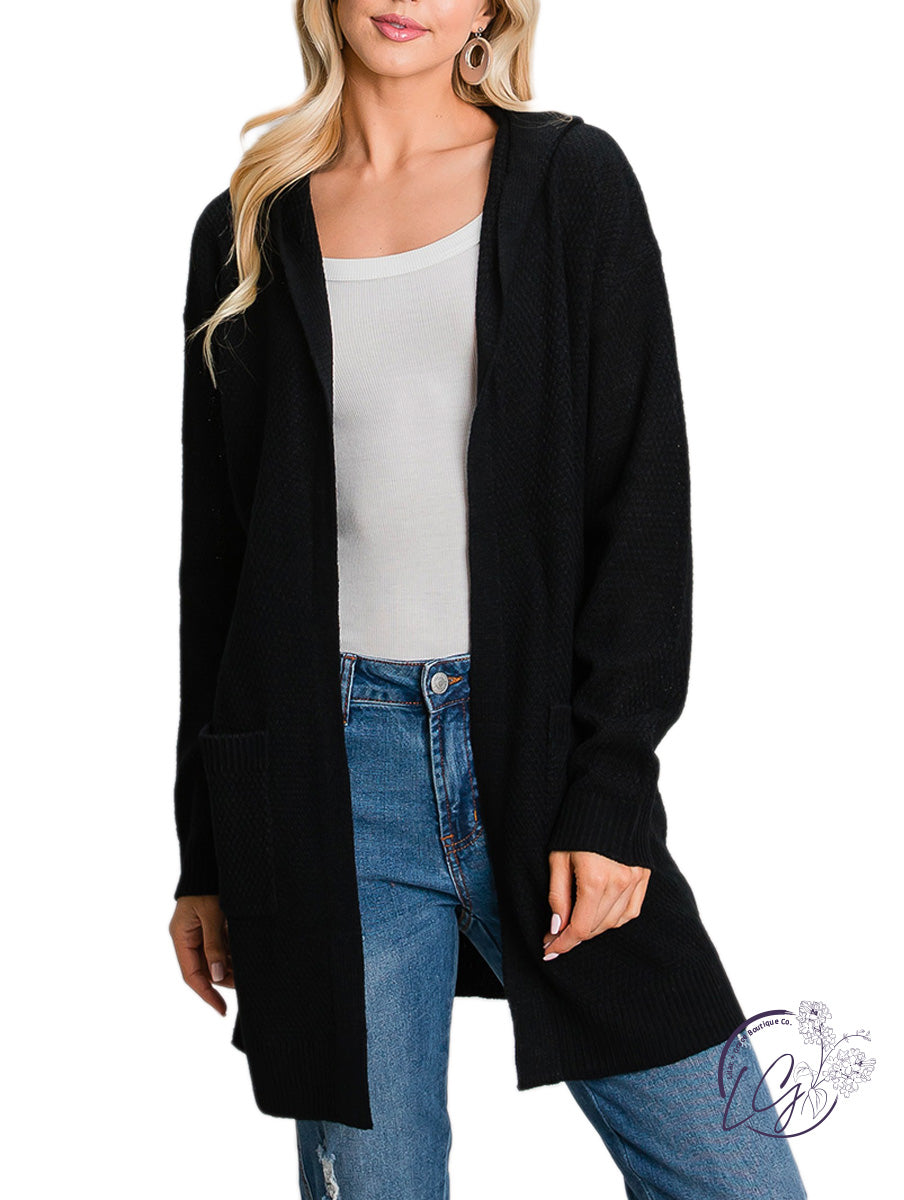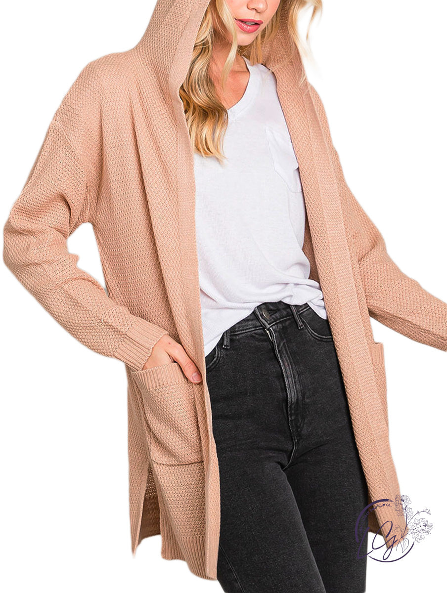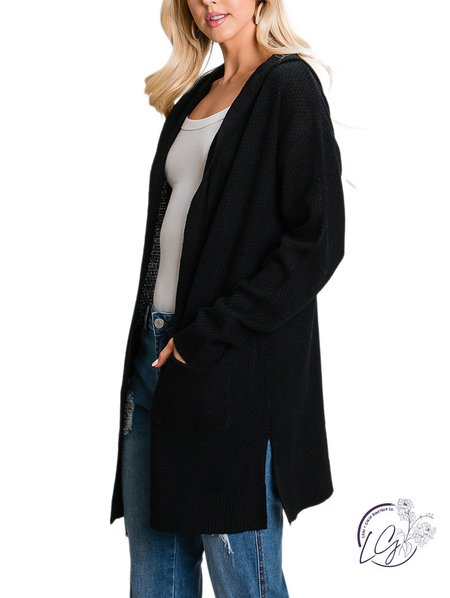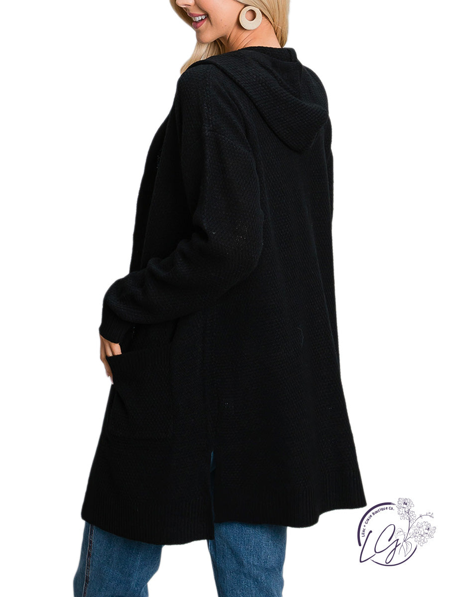Long Open Hooded Cardigan Featuring Ribbed sleeves and front pockets. Made in a waffle knit texture, the perfect outerwear to throw on any outfit.