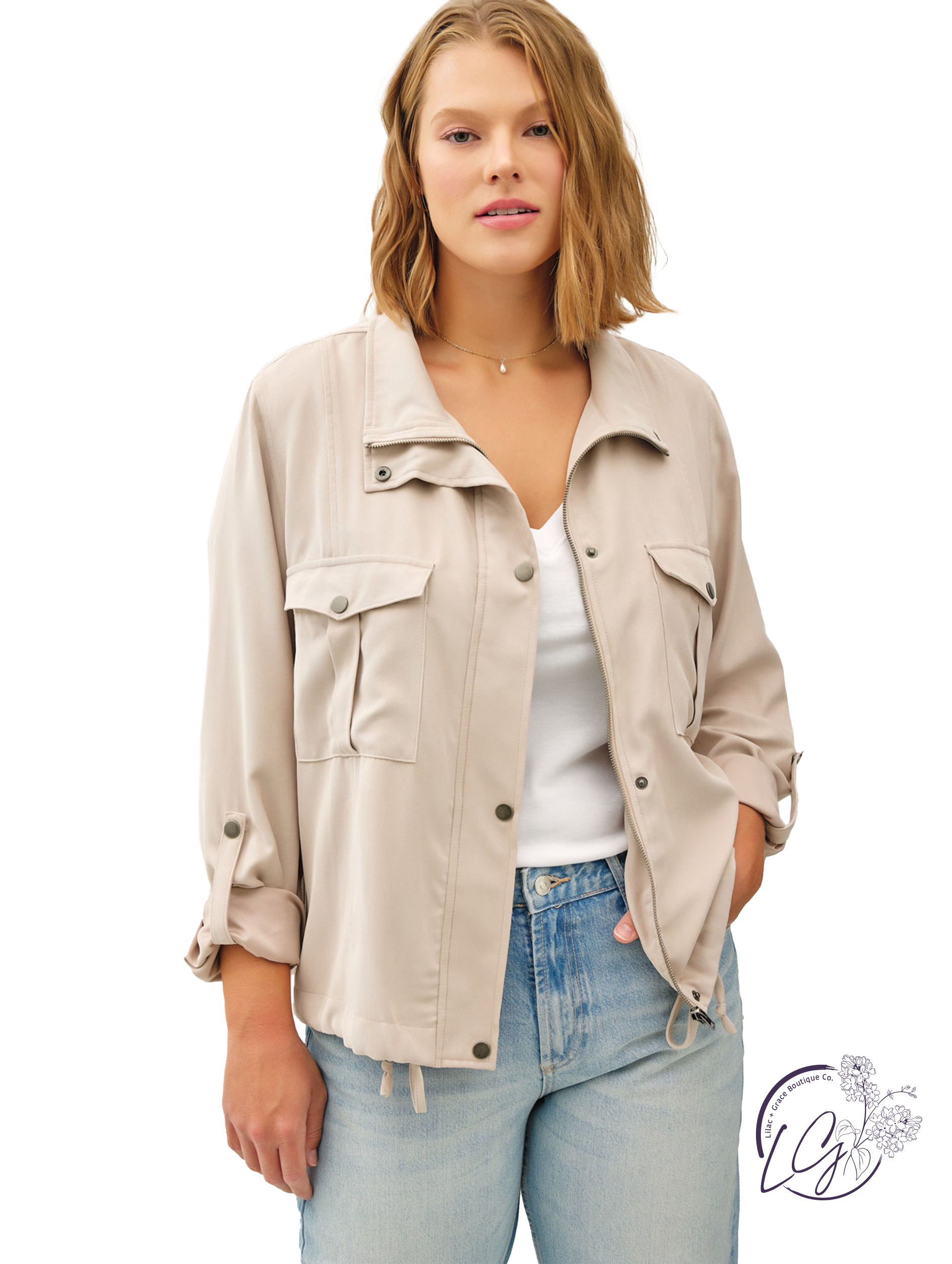 The Curvy Urban Safari Cropped Jacket is a versatile and functional outerwear piece. Crafted from a durable blend of poly and nylon, it offers both comfort and durability. The cropped length adds a modern touch, perfect for layering over tops or dresses. Featuring utility-inspired details such as multiple pockets and a zipper closure, this jacket is both practical and stylish. Whether worn on outdoor adventures or casual outings, it adds a chic and edgy vibe to any ensemble.