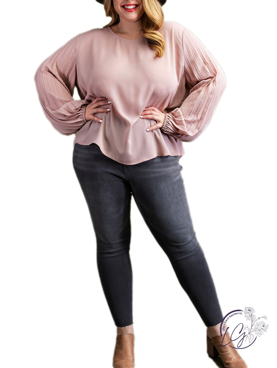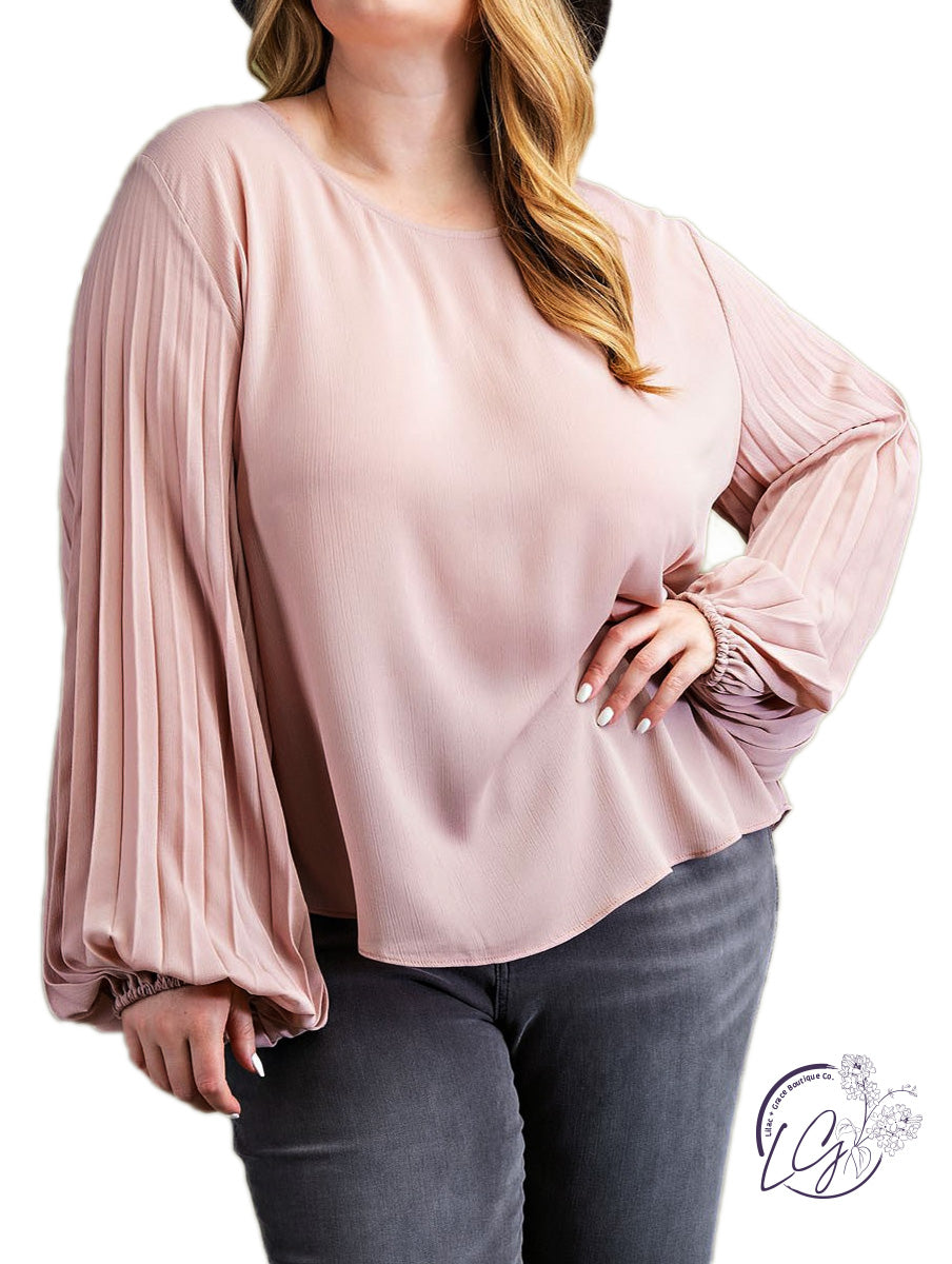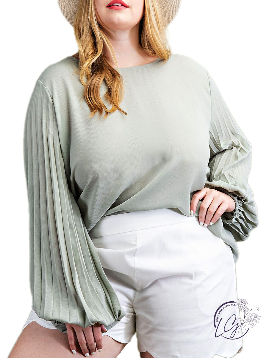 Curvy long sleeve blouse top detailed with pleated puff sleeves.