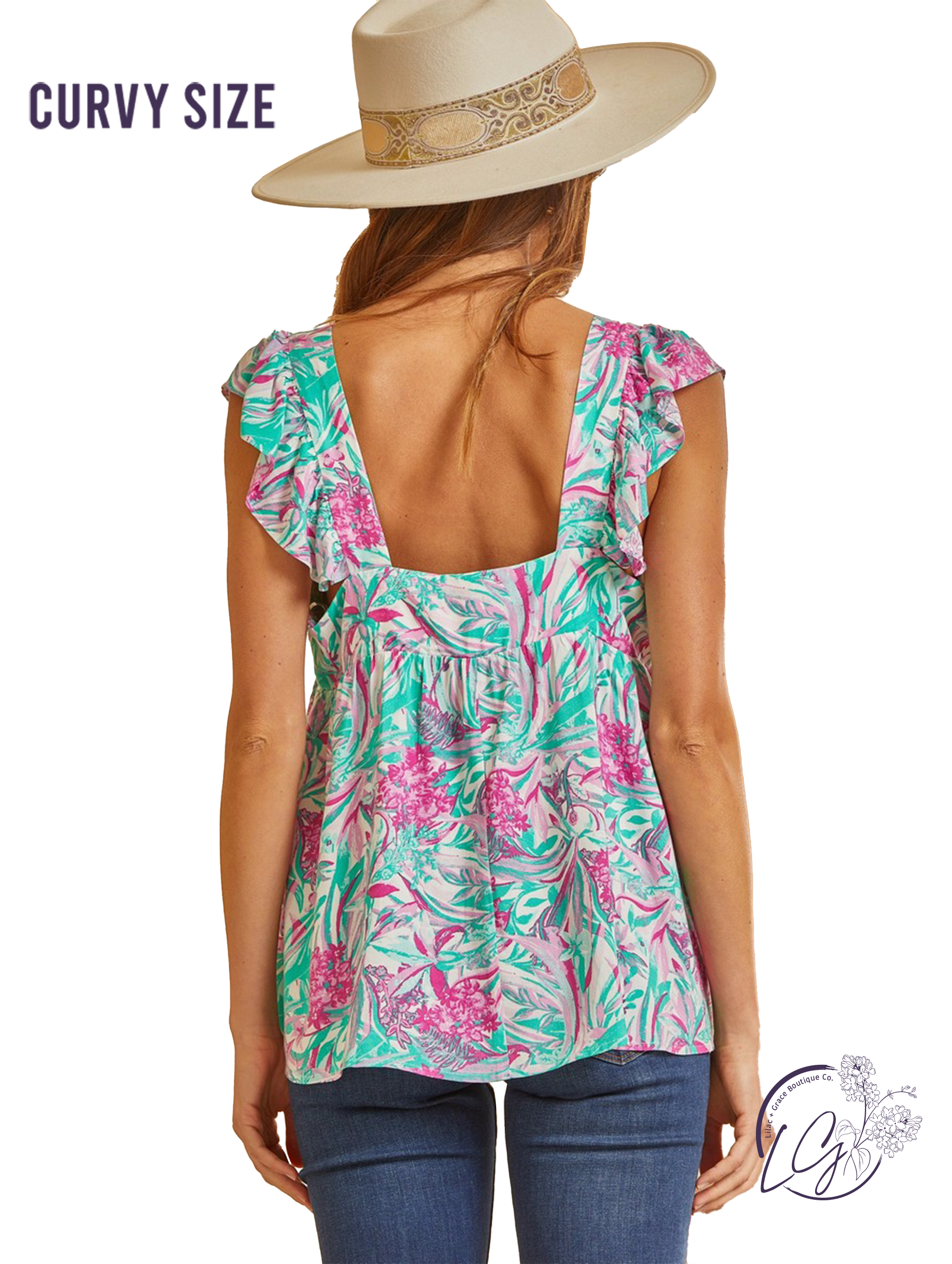 Introducing our Square Neckline Flutter Sleeve Top, a perfect addition to your summer wardrobe. This enchanting top features a flattering square neckline that frames your décolletage beautifully, while the delicate flutter sleeves add a touch of whimsical charm. Made from lightweight, breathable fabric, it ensures you stay cool and comfortable on warm, sunny days. Whether you're heading to a garden party or a casual brunch, this top pairs effortlessly with your favorite shorts, skirts, or jeans, making it a versatile and stylish choice for any occasion. Embrace the season in style with this must-have summer staple.