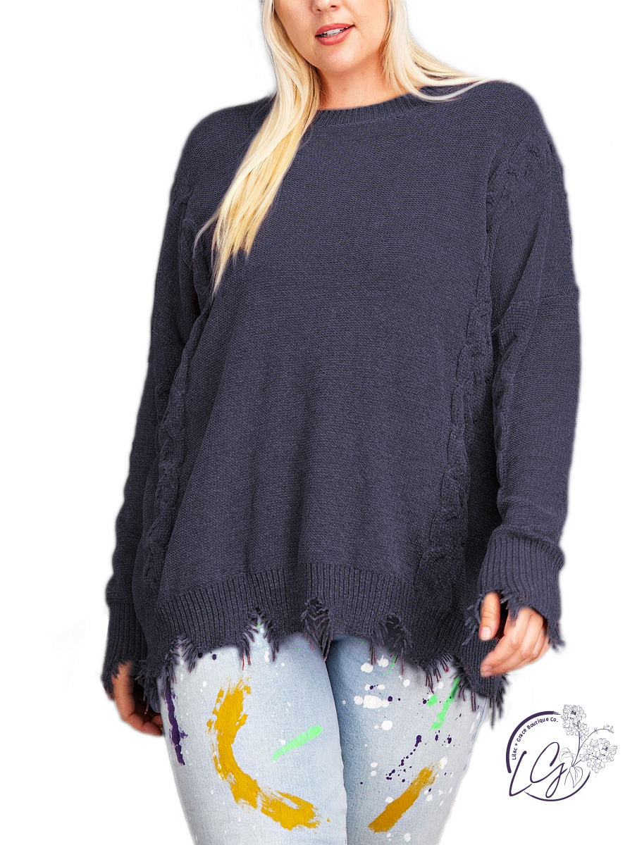Curvy Puddle Jump Solid Cable Knit Sweater