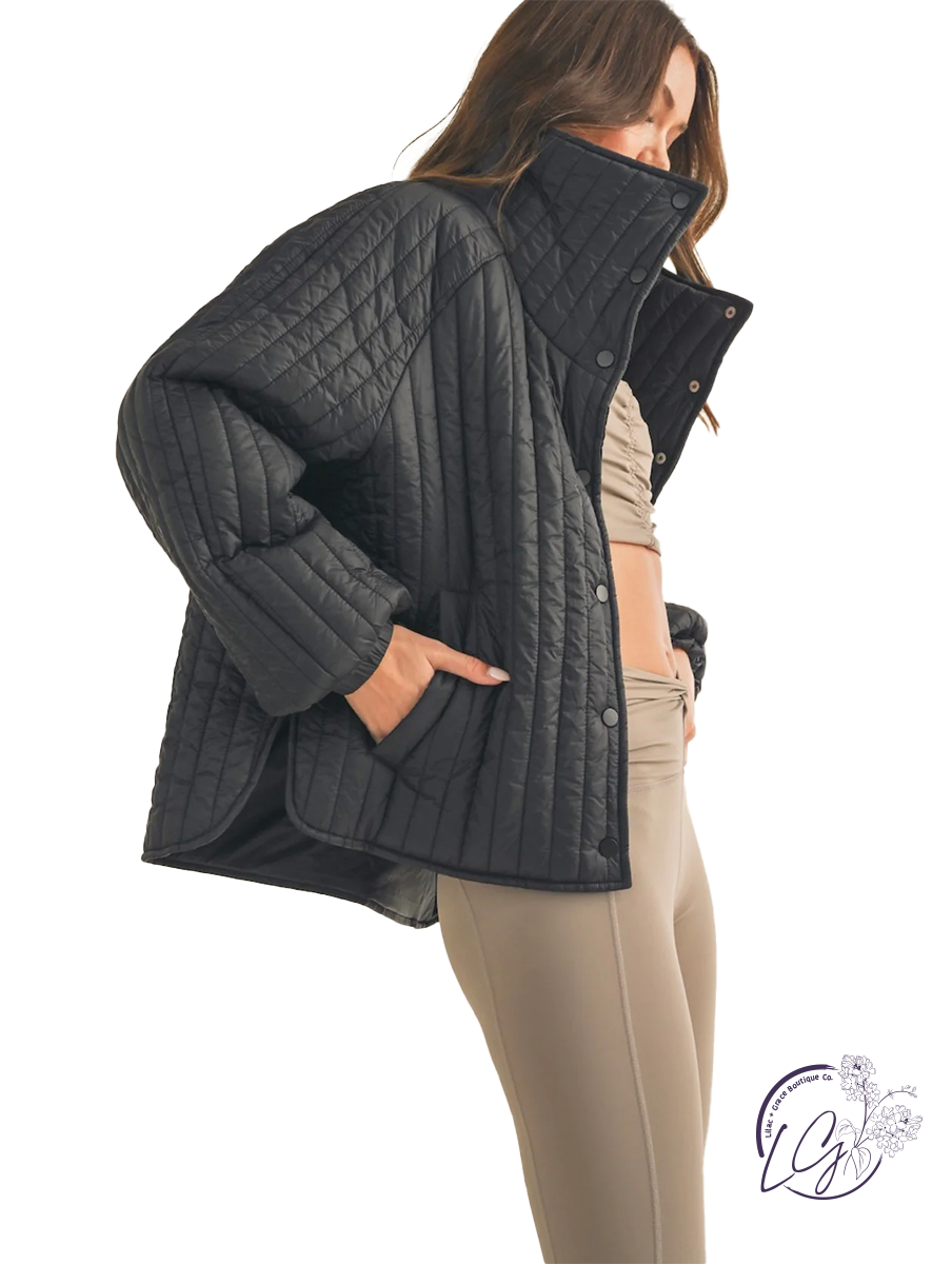 The "Quilted Classic Coverup Coat" is a timeless and versatile outerwear piece that seamlessly combines style with warmth. This coat features a classic quilted design, lending it an air of sophistication and enduring charm. The quilted pattern not only adds a touch of texture but also provides a subtle visual interest to the overall silhouette.
