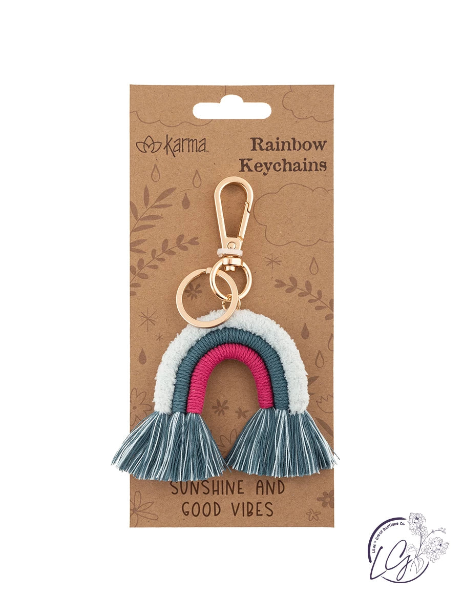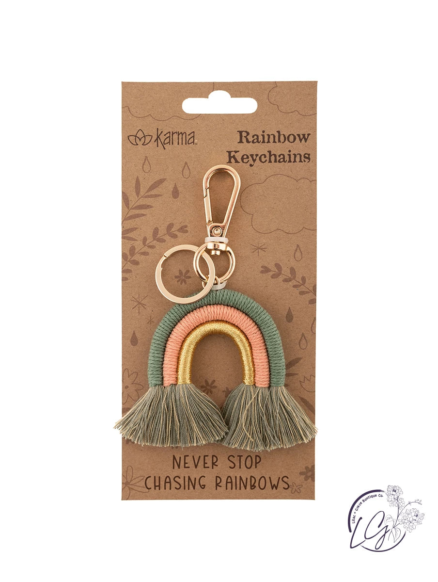 Each one of these macrame rainbow keychains boasts a unique design and color combination that perfectly complements a thoughtful sentiment. Clip on to backpacks, diaper bags, keys, and wherever else you want to add a touch of boho chic. Every rainbow is one of a kind, adding to its individual charm. Great for gifting to moms, sisters, friends, and more.