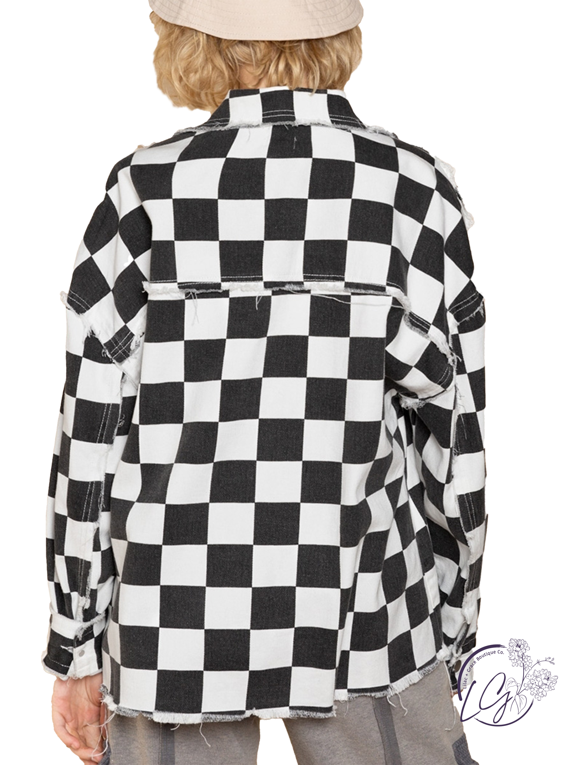 The Relaxed Fit Checkered Jacket boasts a stylish design and comfortable fit, perfect for any occasion. The checker print adds a touch of sophistication to this must-have piece, making it a versatile addition to any wardrobe. Stay on trend and comfortable with this jacket!