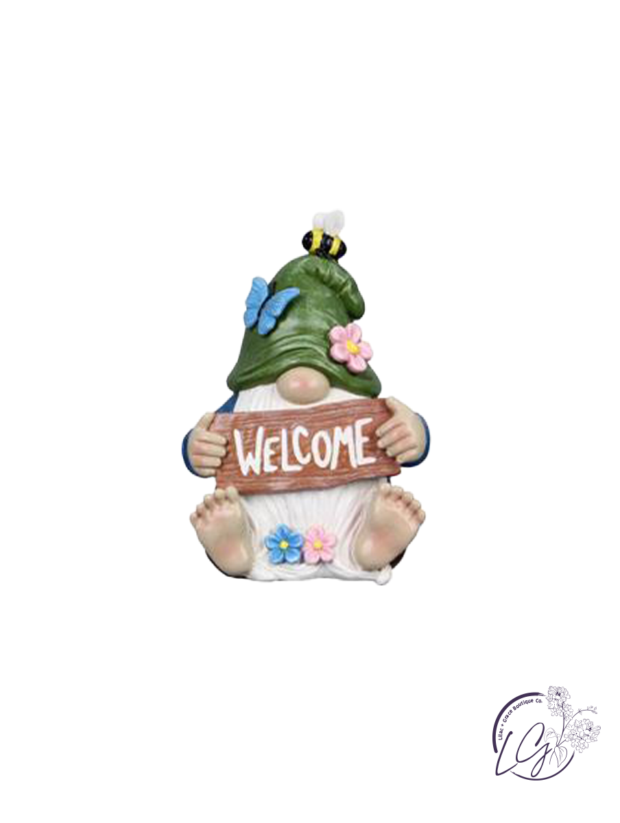 Spring and Gnome themed decor, perfect for greeting your guest and comfort them. These gnomes come with hat having flower, bees and butterfly holding welcome boards.