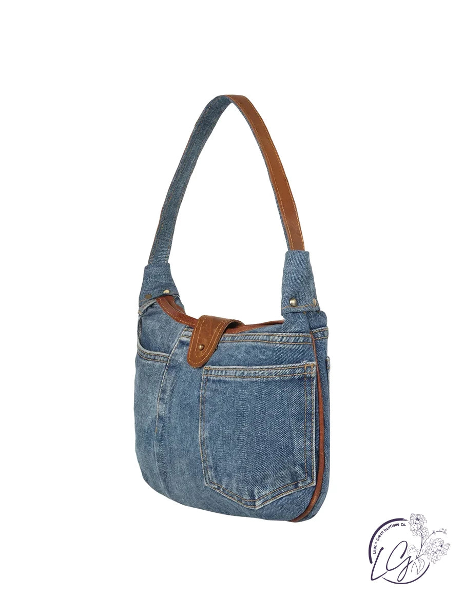 Rhea Hobo Denim And Leather Handbag. Our Retro Urban Products Are Driven To Provide Creativity And Quality. By Using Up-Cycled Material, Our Products May Contain Irregularities ...