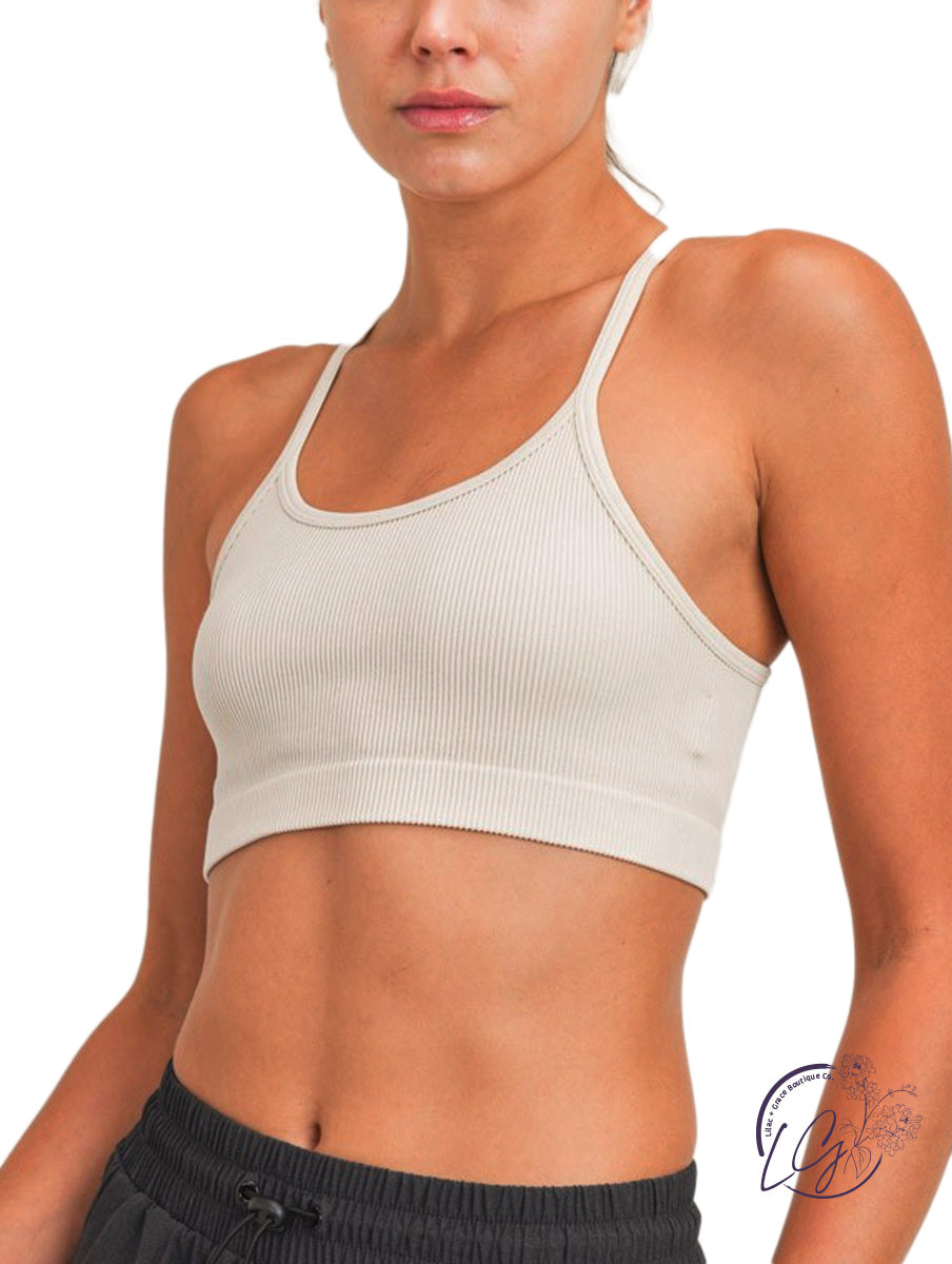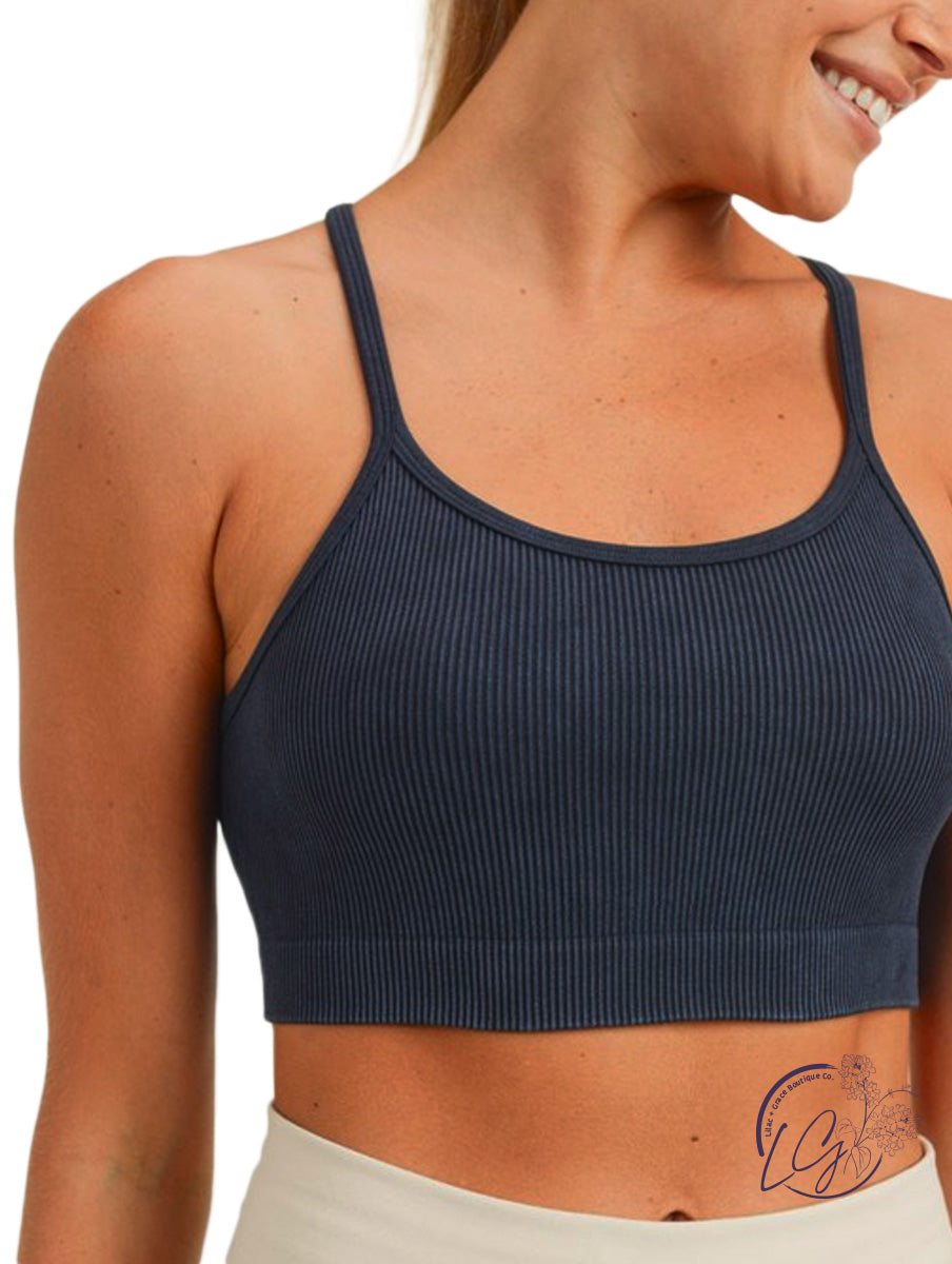 Mineral Washed Ribbed Seamless Racerback Sports Bra