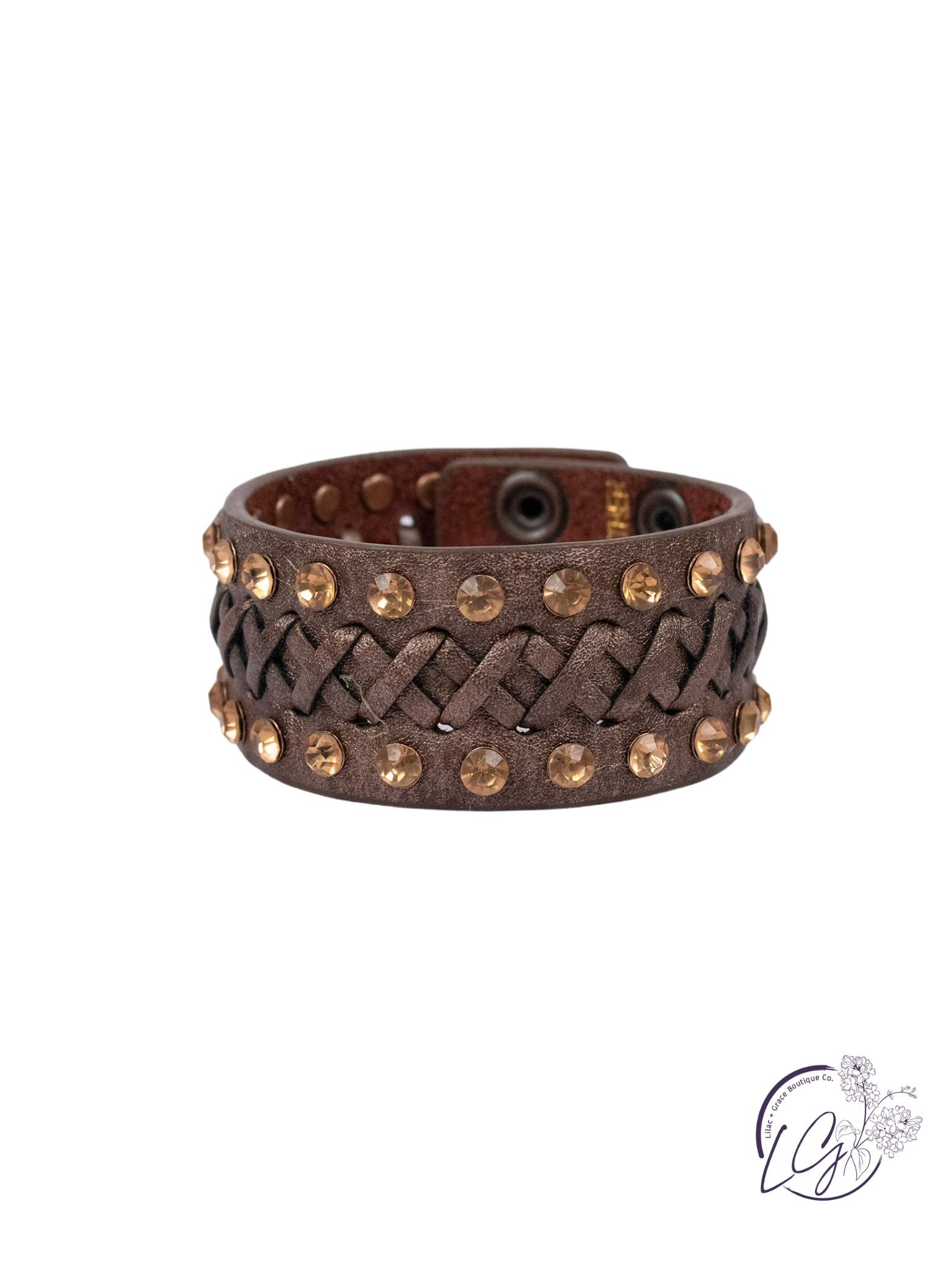 This braided leather bracelet blends texture and strength with a soft, worn-in feel. The handwoven design wraps comfortably around the wrist, secured with a simple clasp for everyday wear.