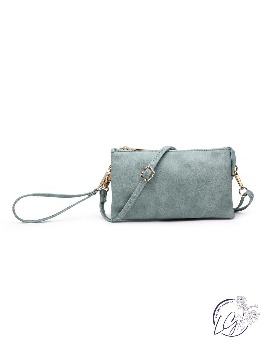 The Riley bag is one of our top sellers. This crossbody/clutch has two major compartments with one middle zipper pocket and a top zipper closure. Inside are two slip pockets and six card holders. Wear it as a crossbody or use it as a clutch! Includes a detachable wristlet strap and an adjustable shoulder strap.