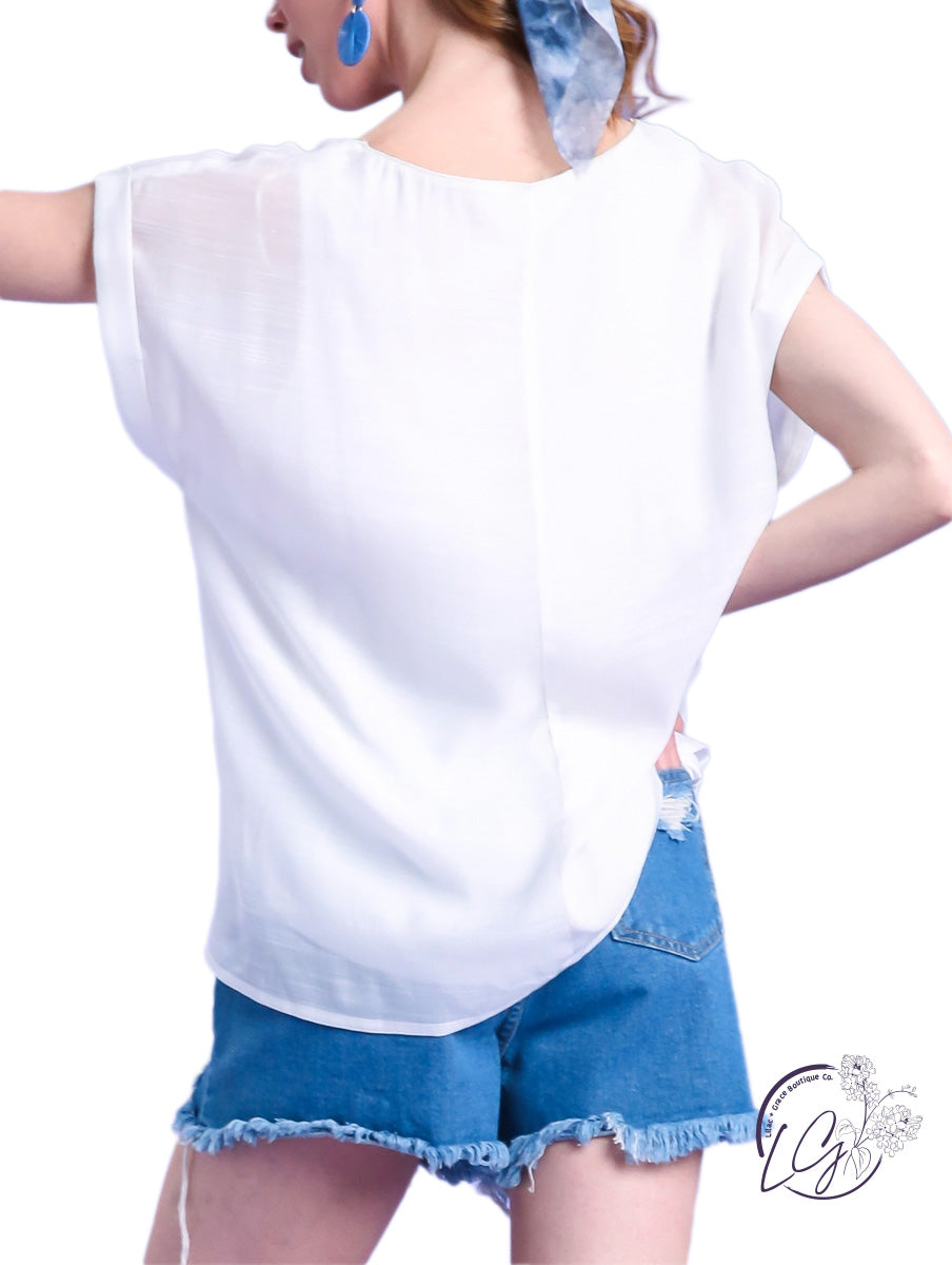 The round neck silhouette provides a clean and polished look, allowing you to showcase your personal style with ease. The short sleeves add a touch of casual sophistication, making this blouse suitable for various occasions, from casual outings to more polished settings.