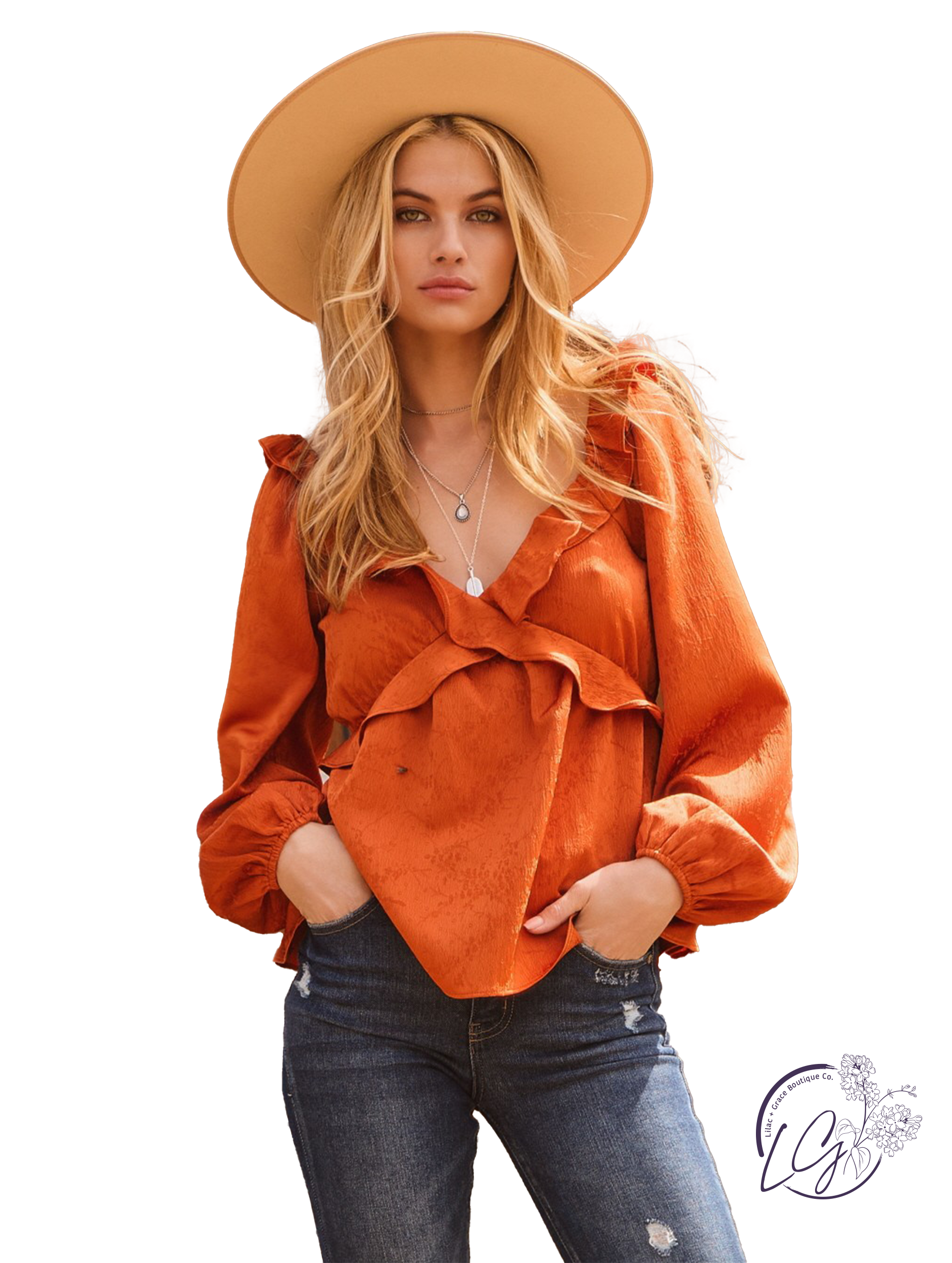 This gorgeous Run Through Dust Blouse is the perfect addition to your wardrobe! Made of luxurious jacquard satin, the blouse features delicate puff long sleeves with elastic cuffs that will elevate any outfit. The v-neckline is accented with a feminine ruffle, adding a touch of elegance to your look. Experience comfort and style in one with this must-have blouse!