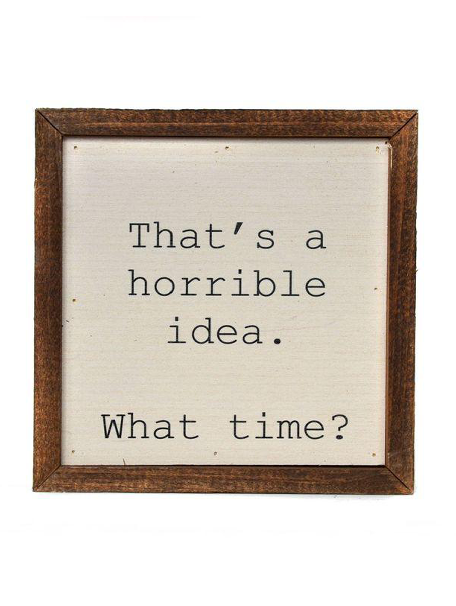 That's a Horrible Idea. What Time? Rustic Wood Sign