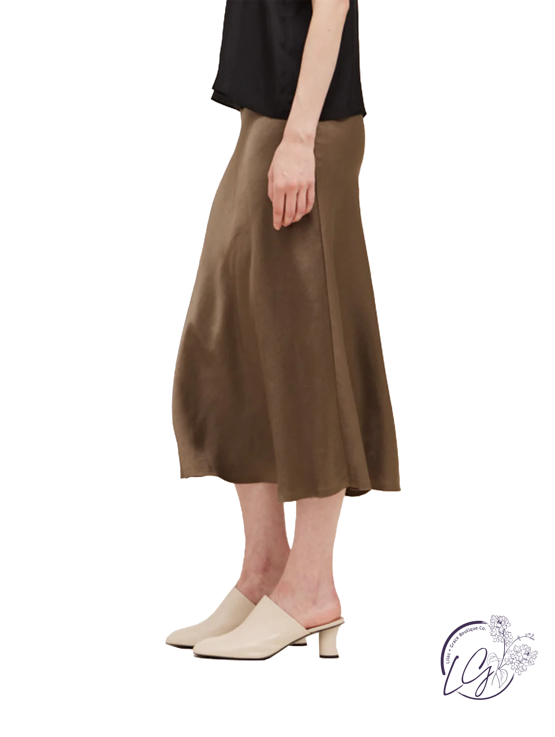 The "Satin Glamour Bias Slip Skirt" is a stunning piece that exudes timeless elegance and sophistication. Crafted from luxurious satin fabric, this skirt drapes effortlessly with a lustrous sheen, creating a mesmerizing silhouette that epitomizes opulence.Designed with a bias cut, the skirt accentuates the curves and flatters the figure, offering a sleek and sensual aesthetic. Its fluid movement adds an air of grace and allure, allowing you to glide with confidence and poise.