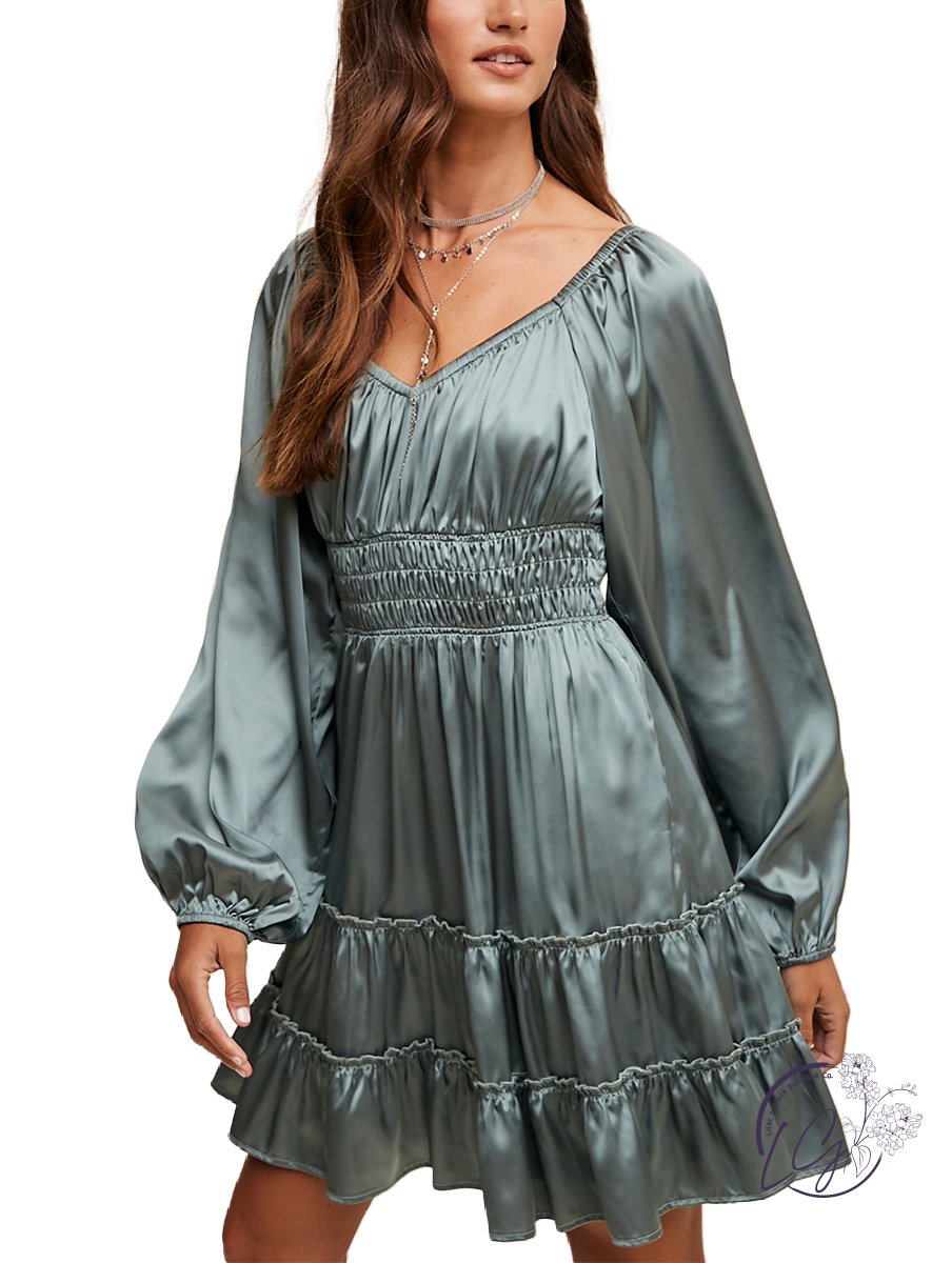 Crafted from sumptuous satin fabric, the dress drapes beautifully, creating a lustrous and smooth finish that enhances the overall allure. The sheen of the satin adds a touch of opulence, making it a perfect choice for formal events, evenings out, or any occasion where you want to exude timeless elegance.