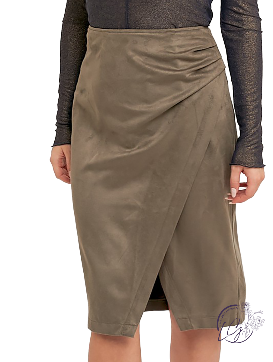 Elevate your style with the Saving My Heart Asymmetrical Midi Skirt, a playful twist on classic elegance. This pleated faux suede wrap skirt features an eye-catching asymmetrical hem that adds movement and flair to every step. Its midi length strikes the perfect balance between chic and comfortable, making it ideal for day-to-night wear.