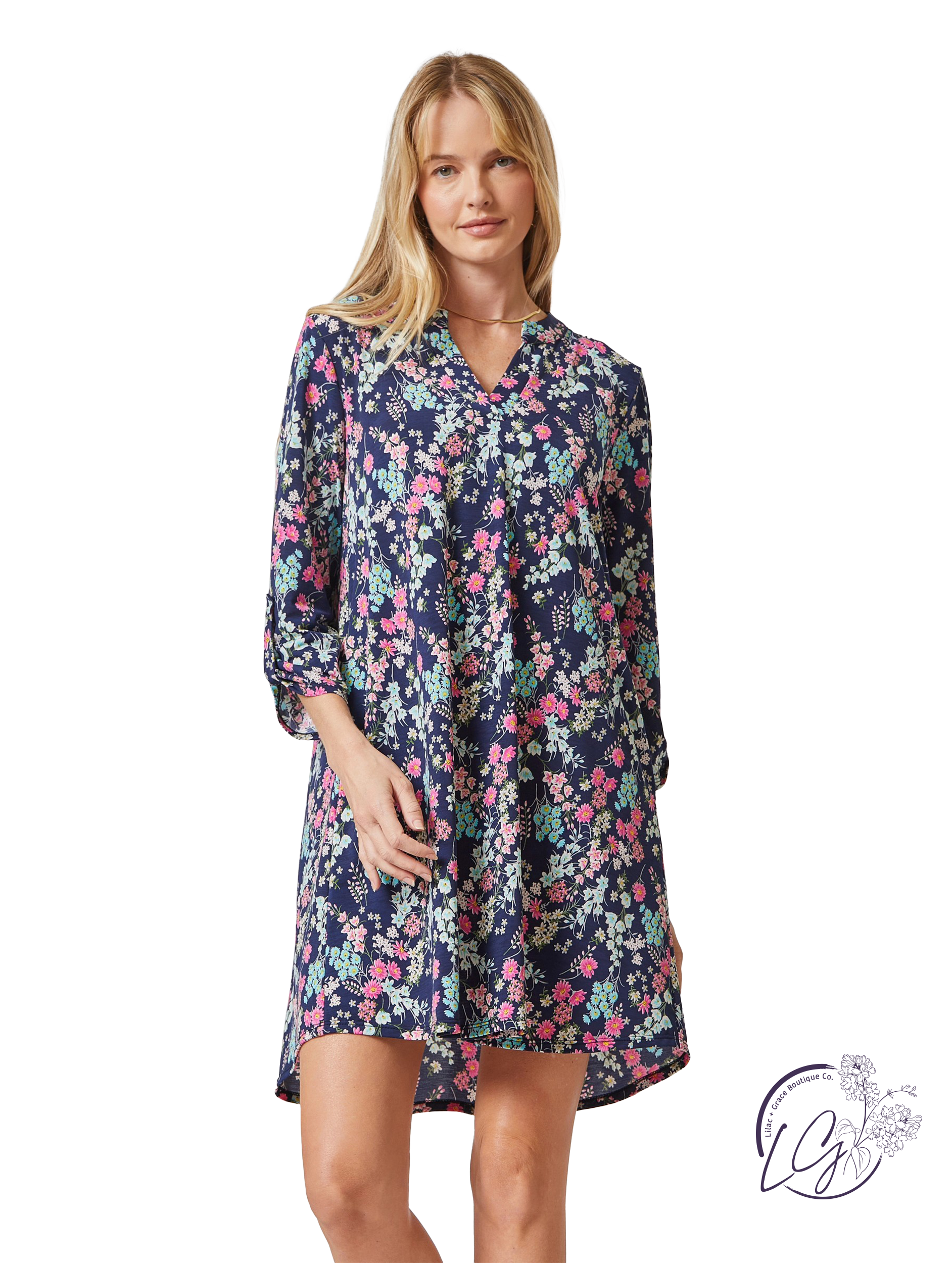 Unleash your inner fashionista with our Navy Classic A Line Dress! The lizzy neckline and tabbed sleeves add a touch of sophistication to this playful piece. Made from wrinkle-free and stretchy material, this shift dress is comfortable and flattering. Choose from a variety of fun prints to elevate your style game. (No need to worry about sheerness - it's non sheer!)
