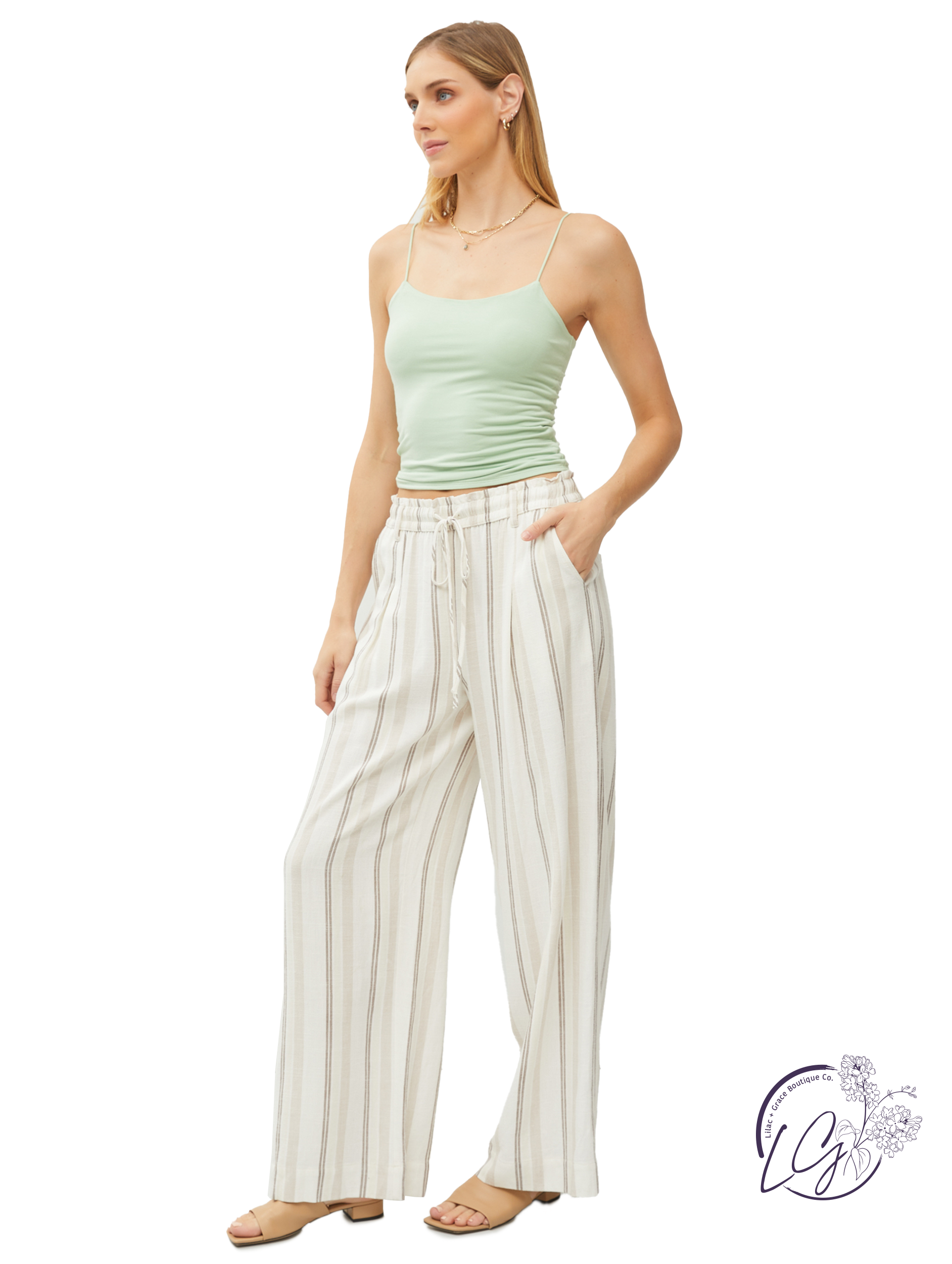 Stay cool and stylish all summer long with our Sea Breeze Linen Pants. These wide leg pants feature a breezy stripe print, drawstring elastic waist, and belt loops for a comfortable fit. Perfect for any beach vacation or casual day out.