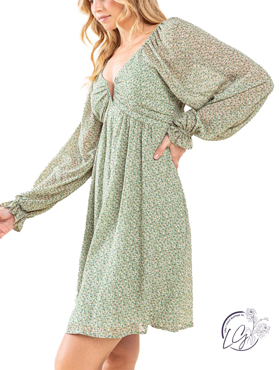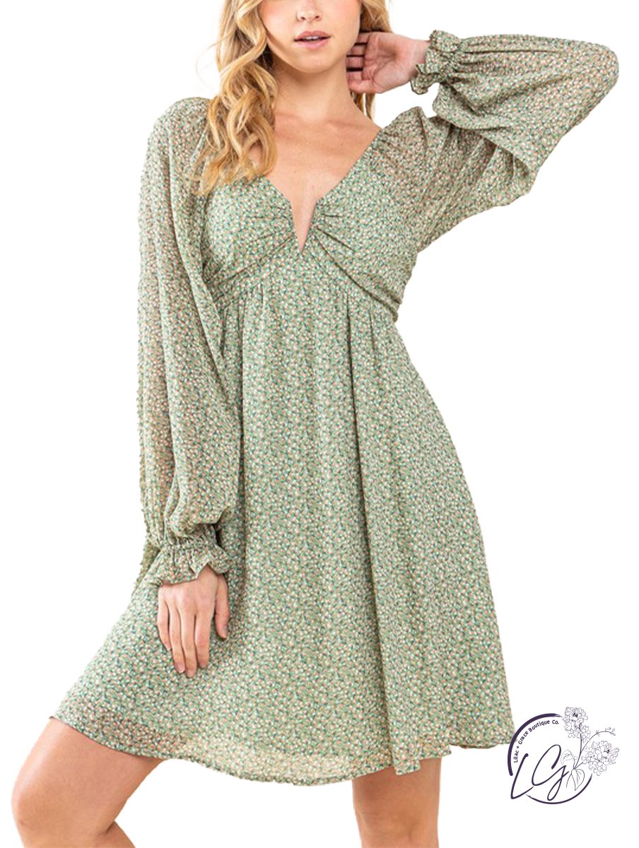 Adorned with a floral motif, the dress becomes a canvas of natural beauty and elegance. The serene symphony of blossoms dances across the chiffon, creating a visual melody that captures the essence of allure. The flare silhouette adds a touch of drama, making it a perfect choice for both formal events and special occasions where you want to make a statement.