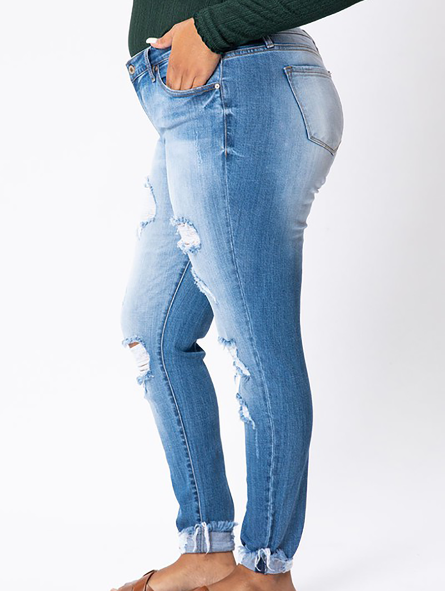 Curvy Sierra High Rise Distressed Ankle Skinny Jean By KanCan
