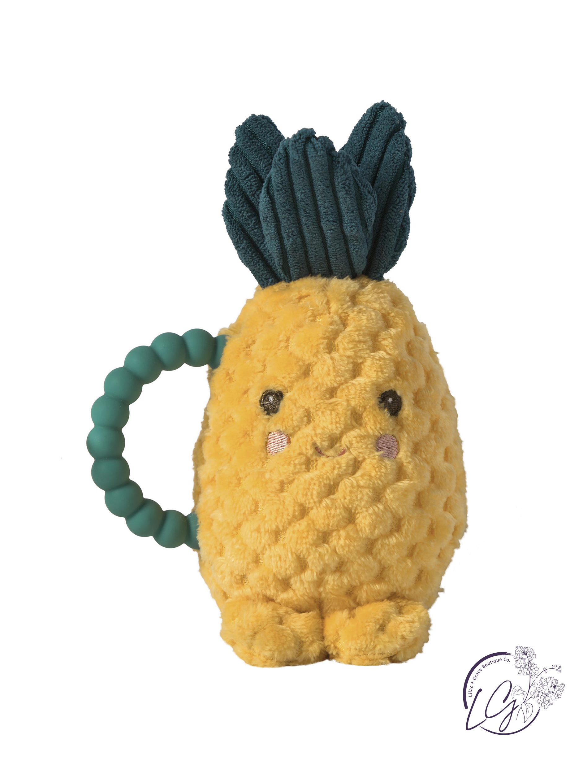 – Peach bead-like silicone teether sewn-in (not teal as shown in secondary photo)