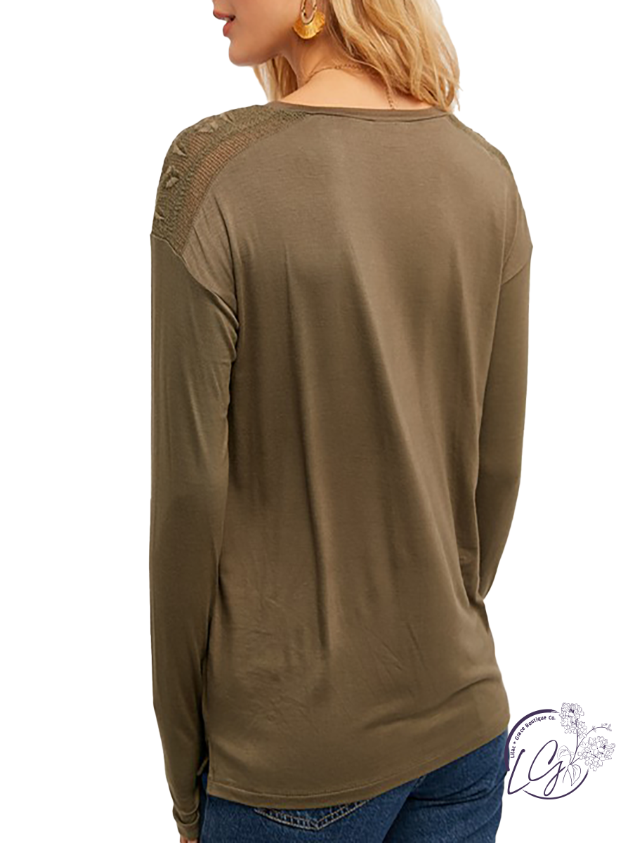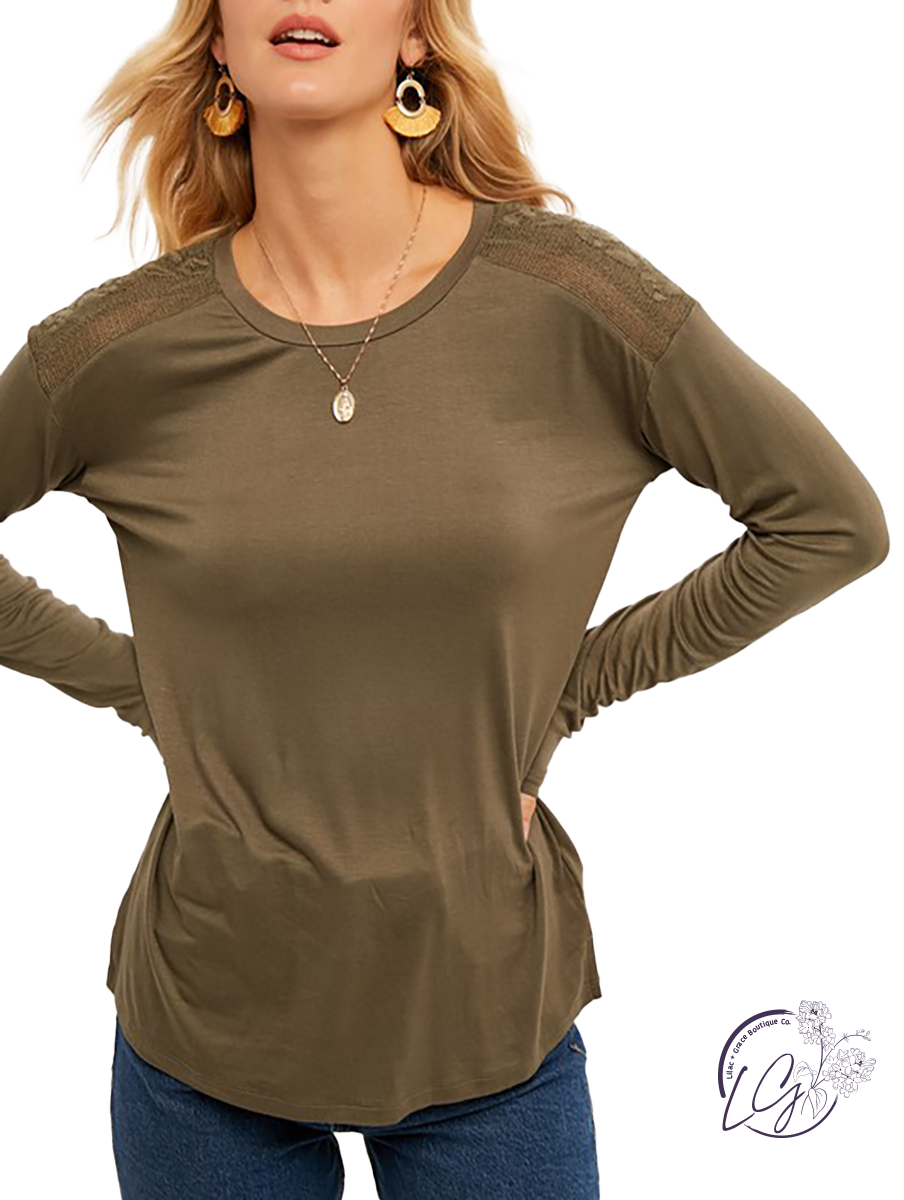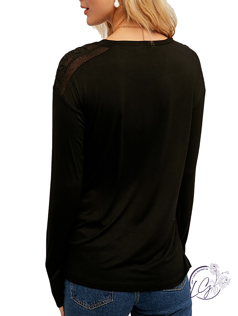 Embroidered Mesh Detailed Shoulder Long Sleeve Soft Top