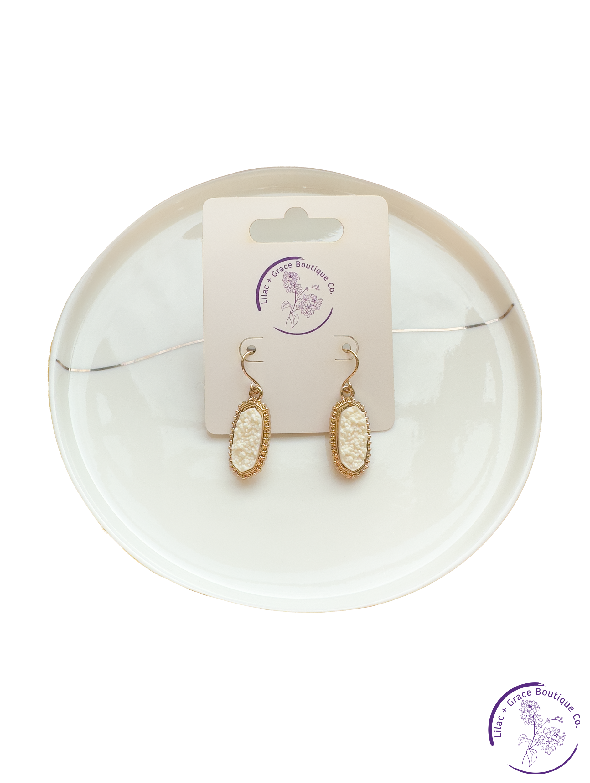 Elevate your style with our Small Drop Oval Earrings! These elegant earrings feature a unique design that will make a statement. Made with high-quality materials, they are lightweight and comfortable. Perfect for any occasion, these earrings will add a touch of sophistication to any outfit.