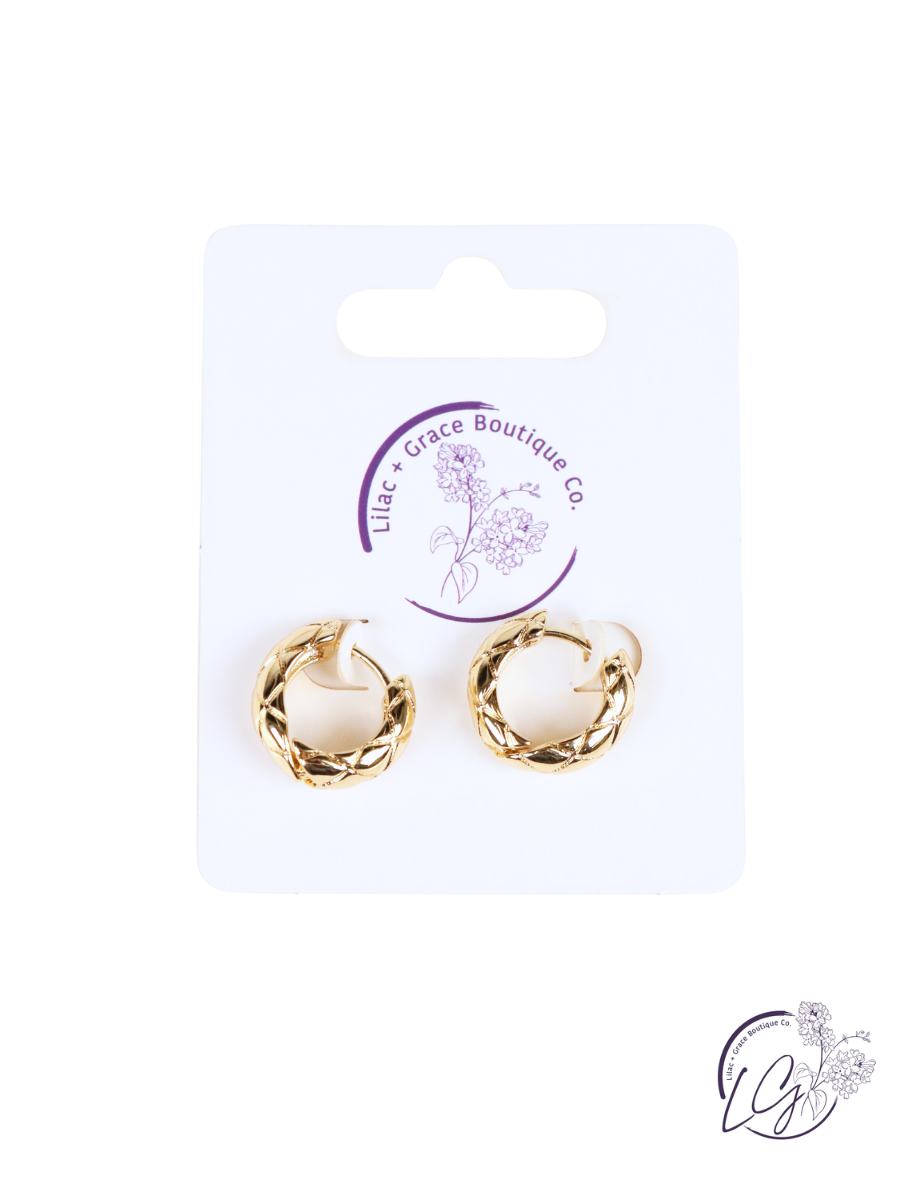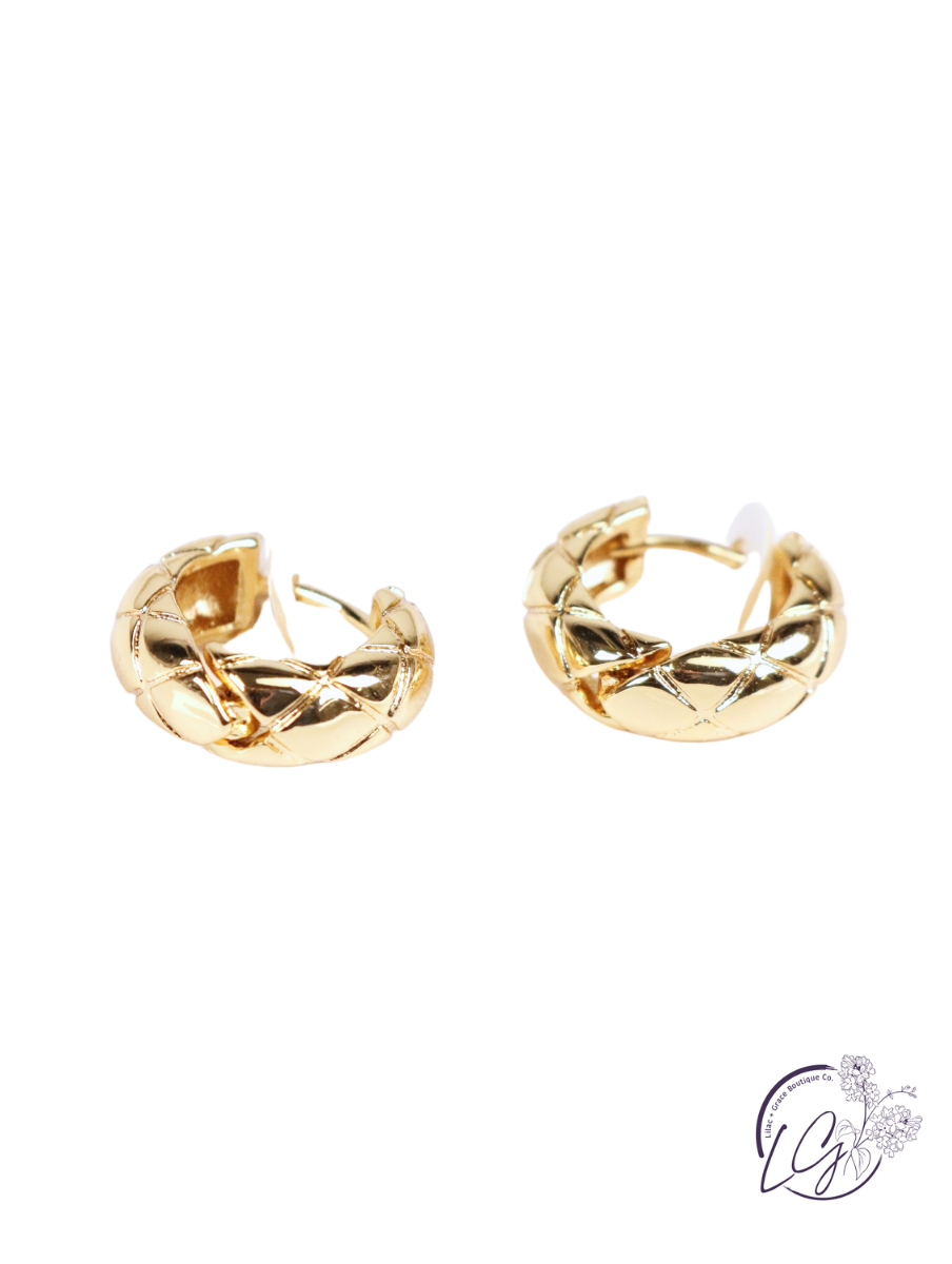 Conquer the fashion world with our Small Quilted Huggies earrings! These bold and daring earrings feature a unique quilted design that will add an edgy touch to any outfit. Take risks and make a statement with these must-have accessories. With their small size, they are perfect for everyday wear and will have you feeling confident and stylish. Don't miss out on these daring and chic earrings!