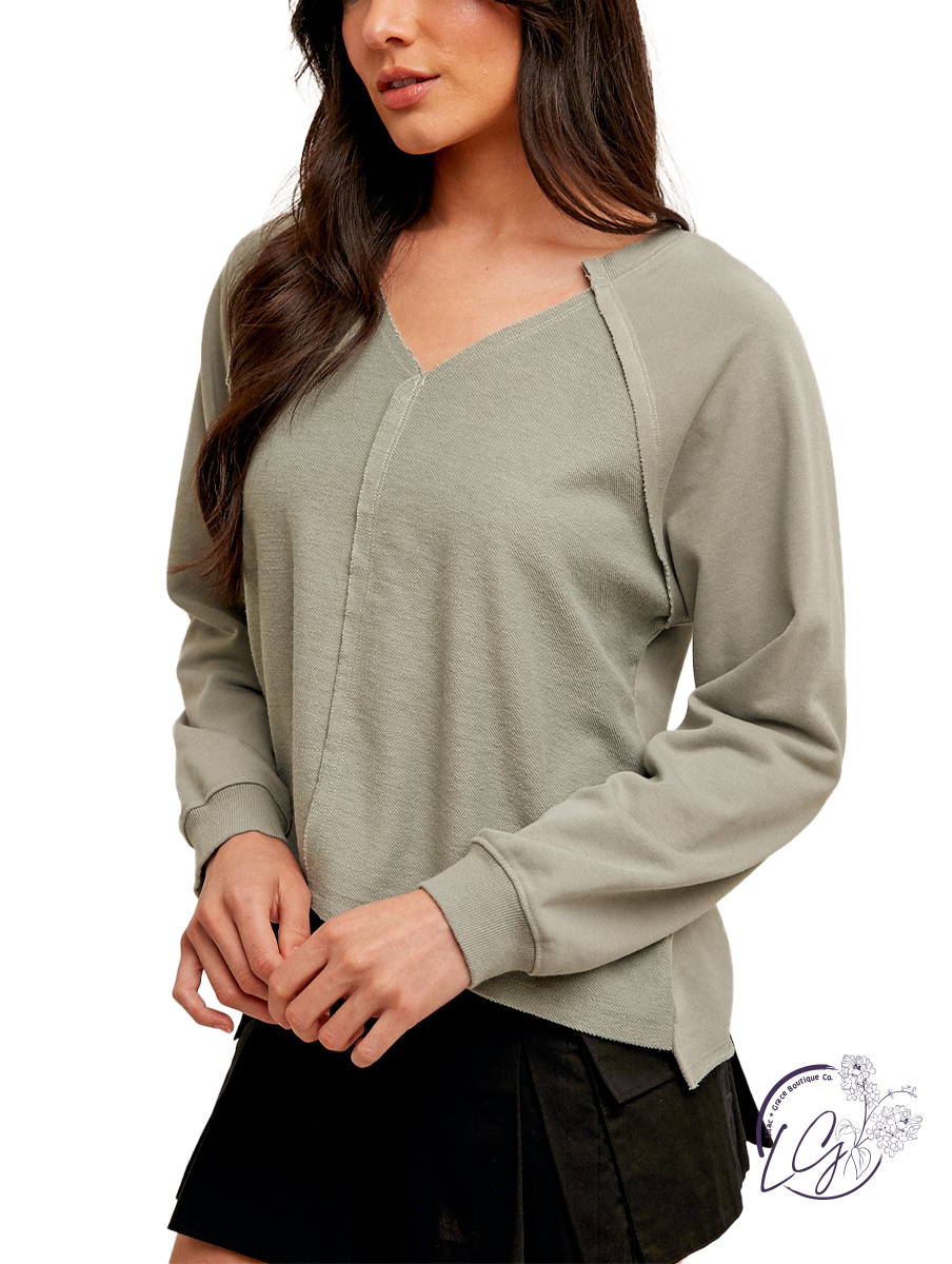 The Spectrum Style Top is a modern and stylish take on casual comfort. Featuring a flattering V-neckline, this sweatshirt offers a relaxed and loose fit for all-day ease. The asymmetrical hemline adds a unique touch, creating visual interest and a contemporary silhouette. Crafted from soft and cozy fabric, it provides warmth and comfort during cooler days. Whether you're lounging at home or running errands, this sweatshirt is the perfect blend of style and comfort for any casual occasion.