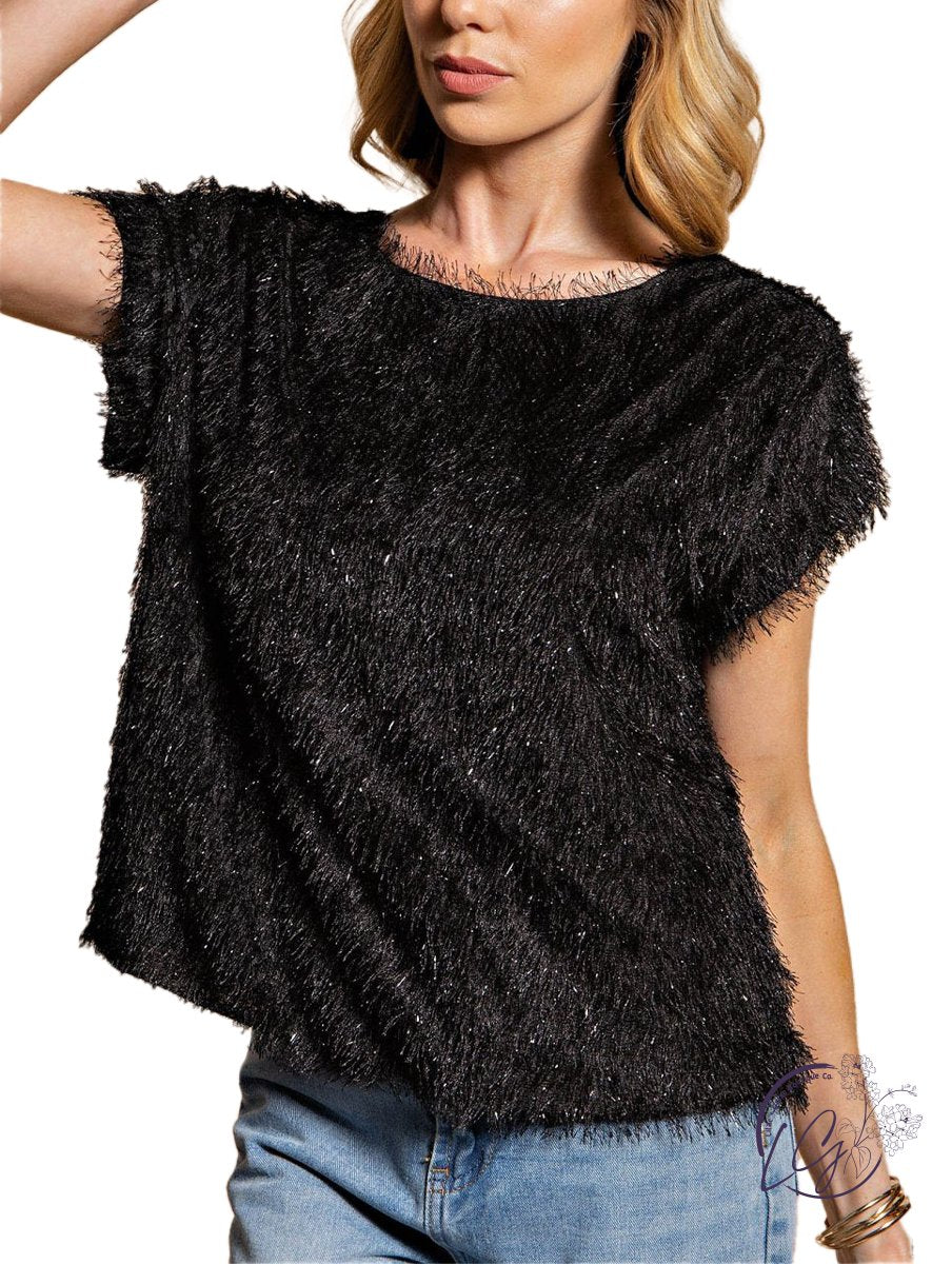 The round neck design of the top provides a classic and versatile look, making it suitable for various occasions, from festive gatherings to a night out on the town. The metallic threads woven into the fabric give the garment a subtle but eye-catching sparkle, ensuring you stand out with a celestial allure. The meticulous lining enhances the overall quality and comfort of the top, ensuring a luxurious feel against the skin.