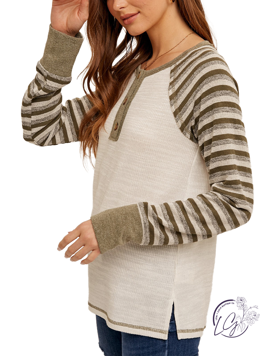 Striped Contrast Knit Henley Top