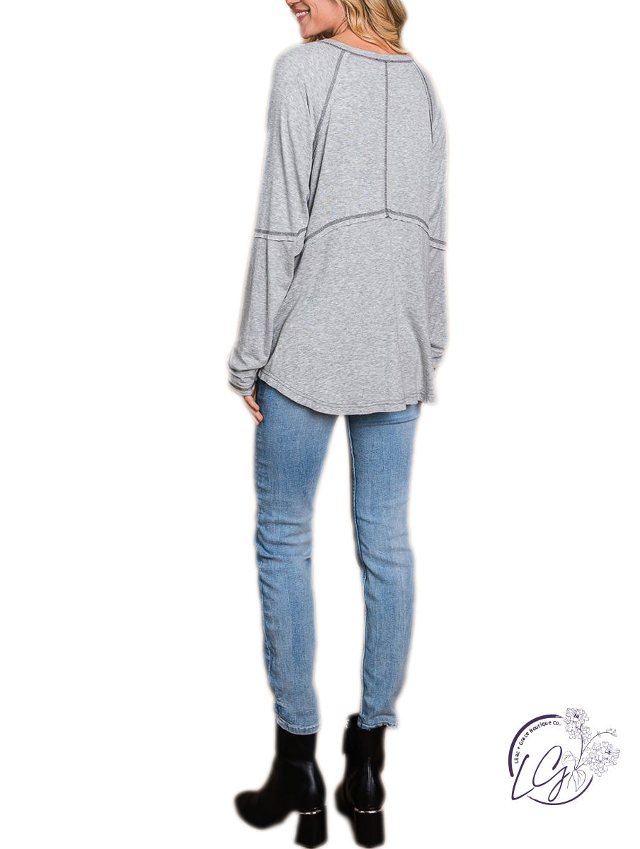 SUPER SOFT RAGLAN TOP WITH STITCH DETAILS