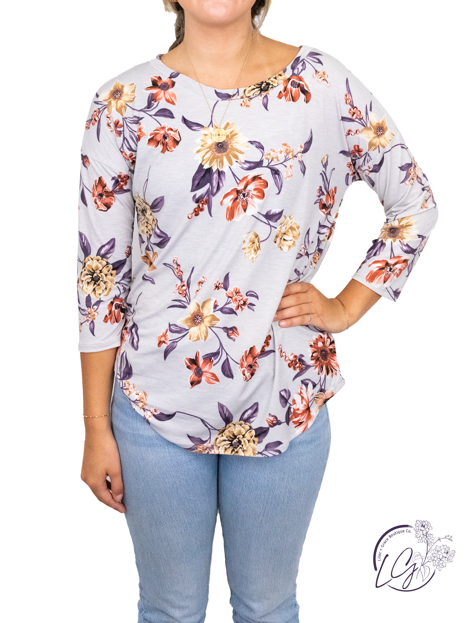 Effortlessly stylish and comfortable, the Grey Multi Print Top by Dear Scarlett is perfect for any occasion. Made with wrinkle-free fabric, this top features a round neckline and 3/4" sleeves for a flattering fit. The round hemline adds a touch of sophistication, while the knit, stretchy fabric ensures maximum comfort. Stay chic and carefree with this must-have top!