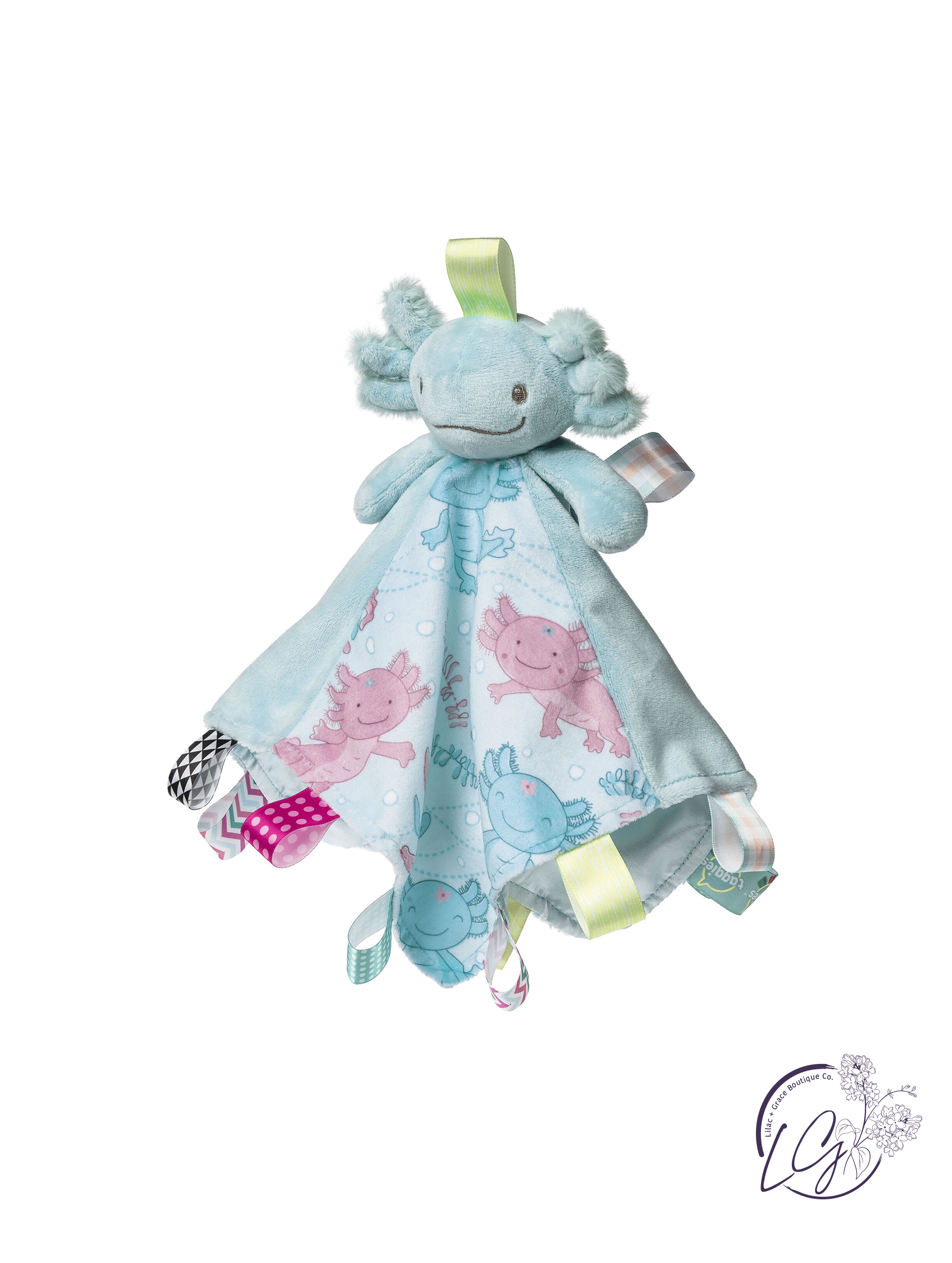 Whether for naptime, playtime, or on-the-go, our character blanket will provide comfort and companionship. Get ready for smiles with this charming Axolotl blanket with 19 TAGGIES ribbons.