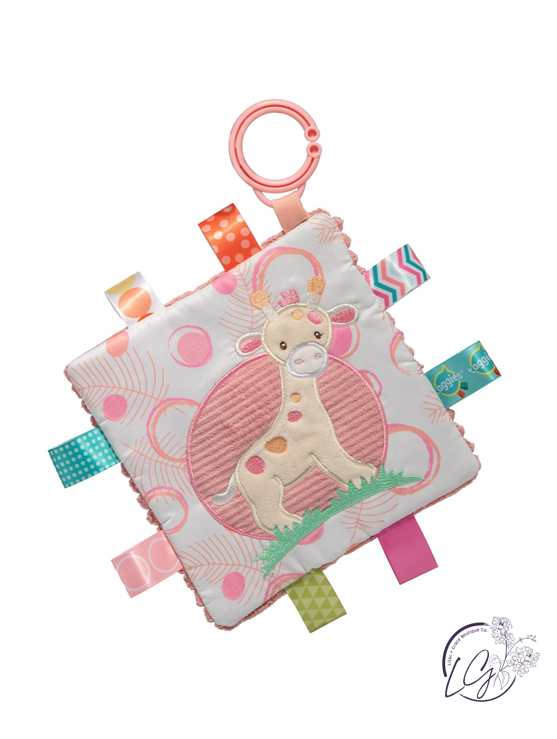 Your little one will not be able to resist this giraffe theme, which features soft fabrics adorned with sherbet-colored spots. Additionally, these toys feature famous TAGGIES ribbons designed to stimulate a baby’s senses and provide a tactile experience.