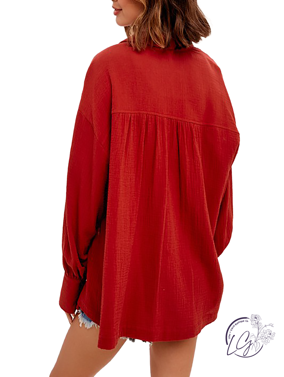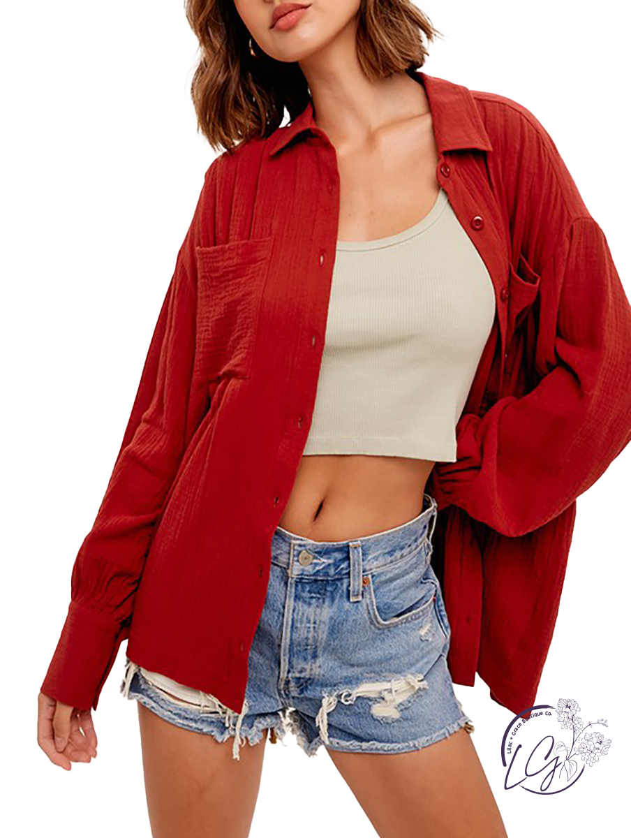 Loose fit button down shirt with chest pockets