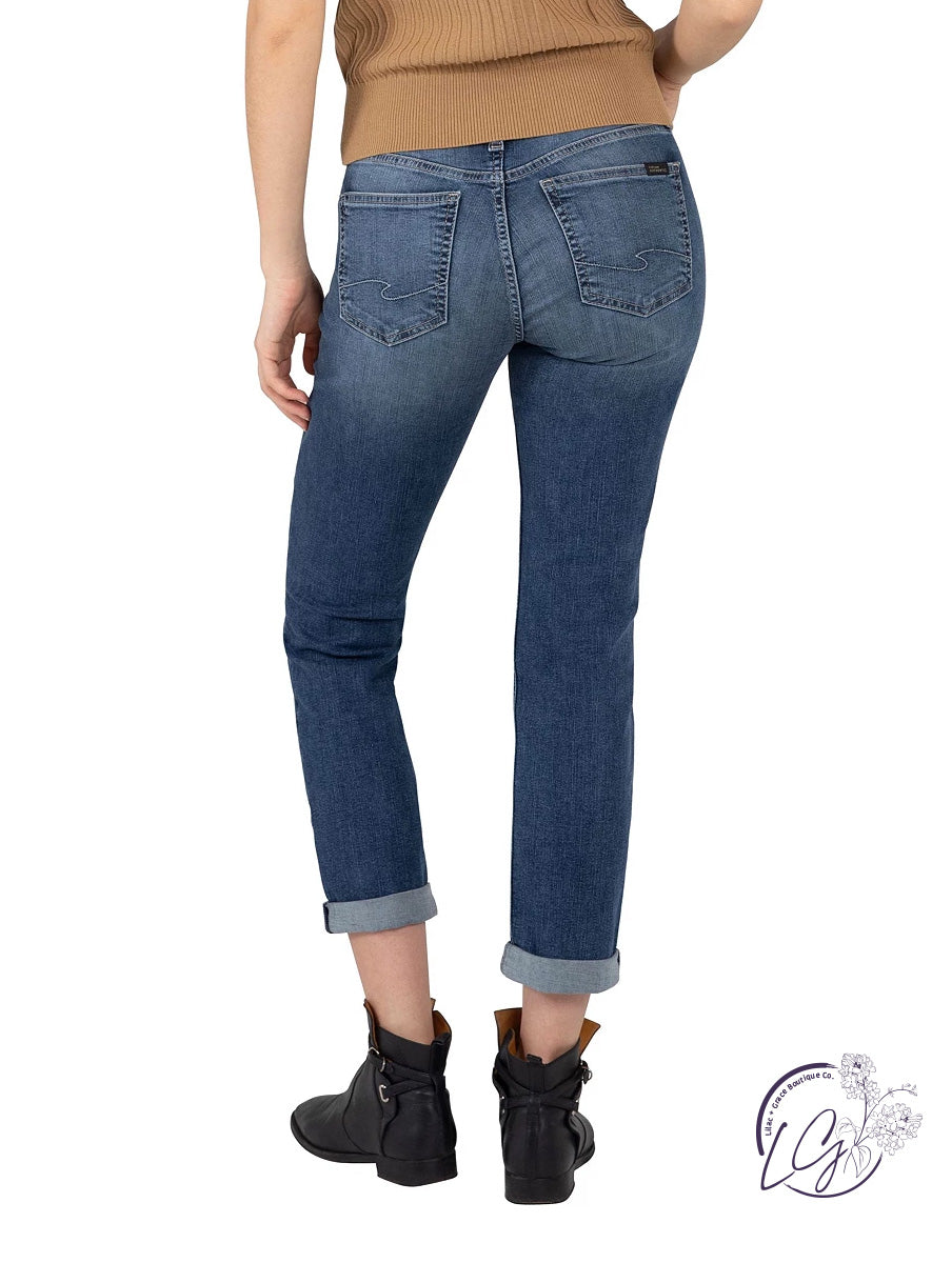 The ultimate every day slim straight jeans, engineered with a mid-rise, contoured waistband that never gaps and eases through the hip and thigh for a perfect curvy fit. Say hello to the curvy mid skinny from authentic by Silver Jeans.