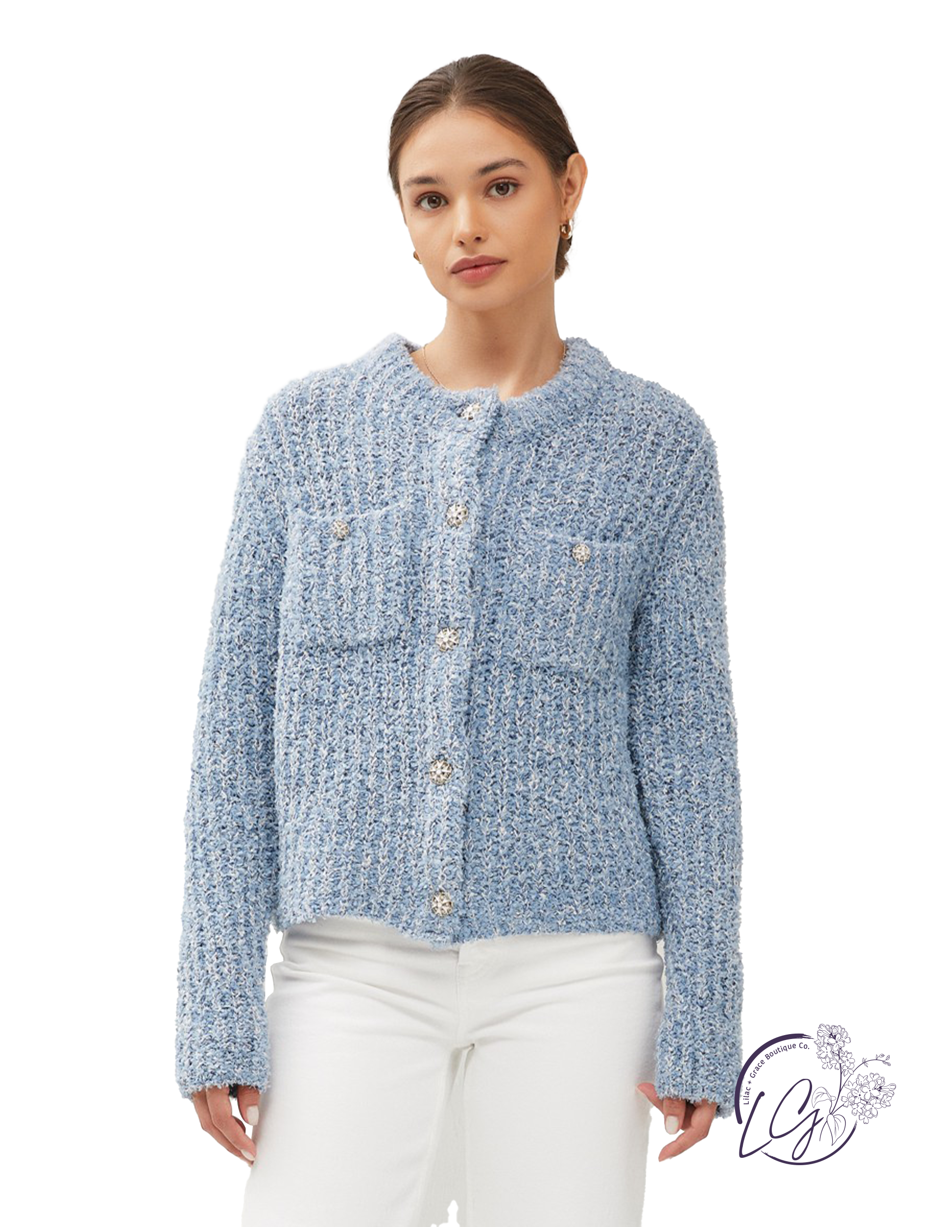Stay warm and stylish this winter with our Elegant Wintercrest sweater. In a sleek shade of blue, this quincy jacket will elevate any outfit. Stay cozy while turning heads with this must-have winter essential.