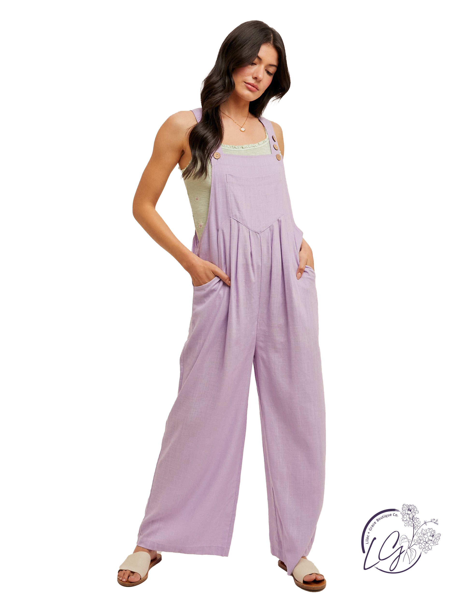 These wide leg linen overalls offer a relaxed, breathable fit with a soft drape and effortless movement. Designed with adjustable straps, a square neckline, and roomy patch pockets, they bring laid-back utility to warm-weather dressing. The wide leg silhouette pairs easily with fitted tanks or cropped tees—perfect for slow mornings, weekend markets, or casual days on the go.