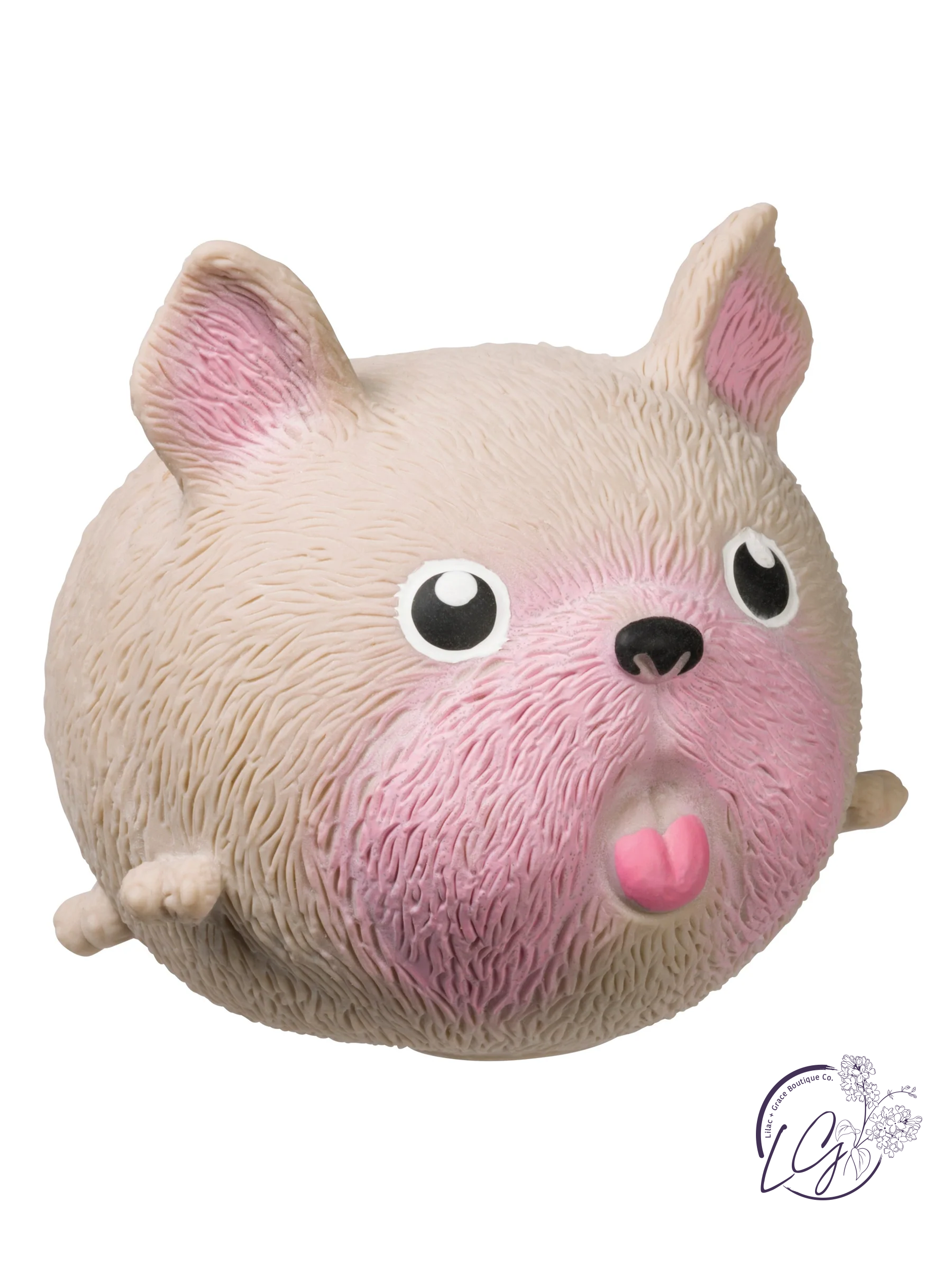 Skwishy Pets Dogs measure 4.5 inches in diameter and have rotund spherical bodies. These squish balls come in 4 brightly colored dog styles. Each one has protruding tiny feet, giant black and white eyes, a black nose, and either pointed or folded ears. Choose the brown Pug, beige and pink French Bulldog, orange and white Corgi, or the yellow Labrador Retriever.
