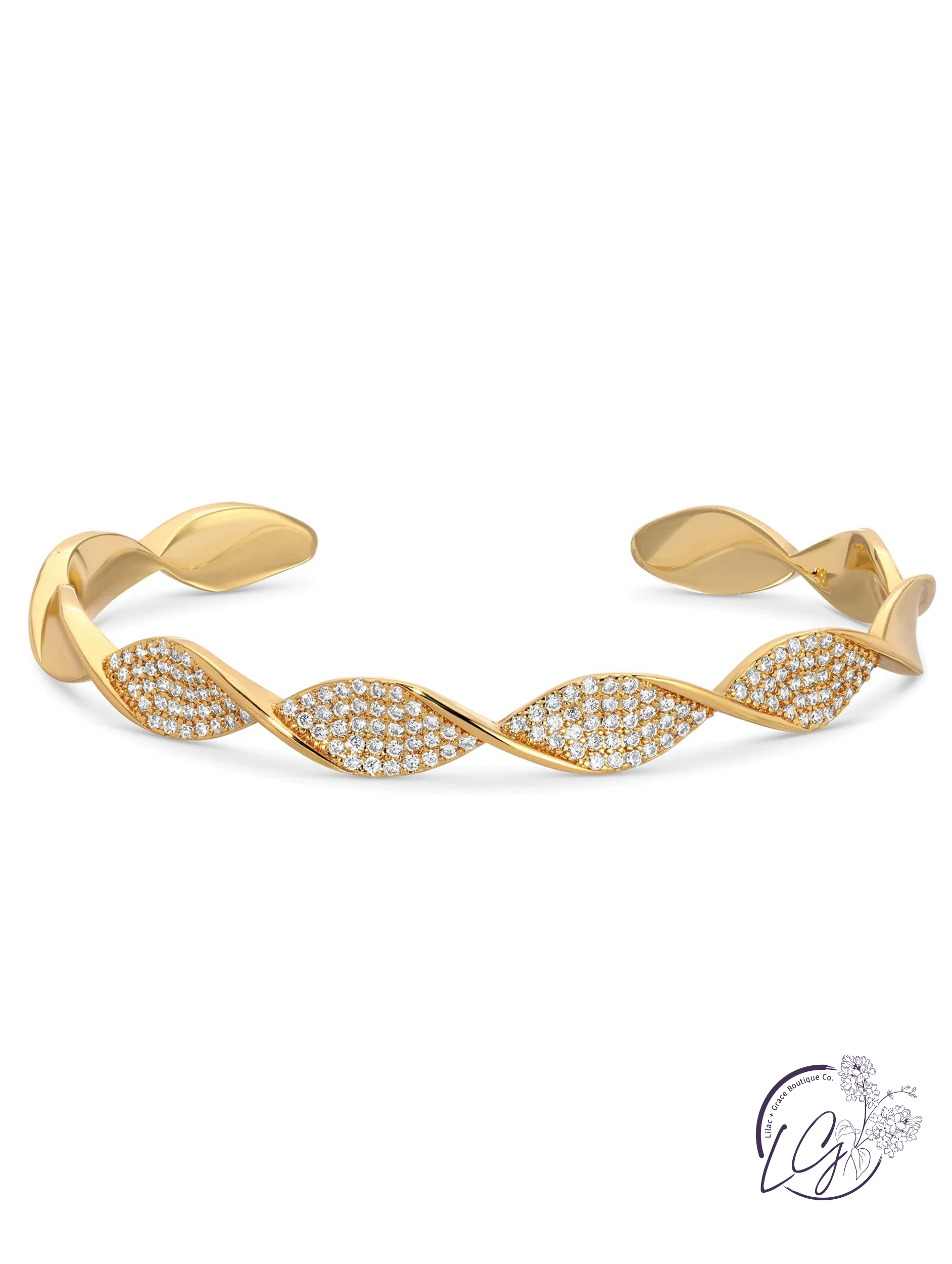 Elevate your vibe with this gorgeous, dazzling cuff bracelet featuring a twisted design and sparkling pave accents.