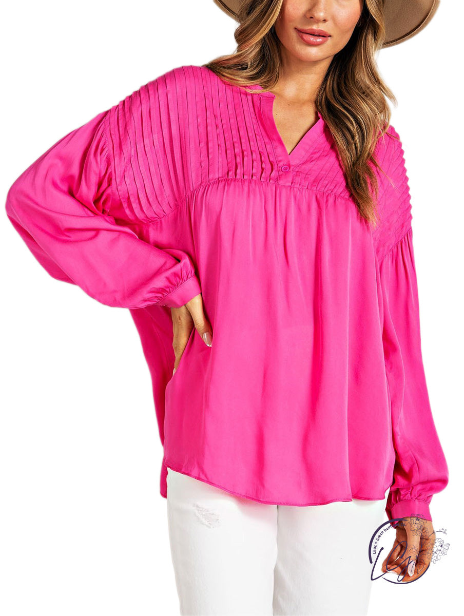 Lightweight long sleeve top with a pleated design and buttoned cuffs! Easy to wear with any outfit!