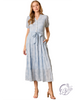 Flow through your day in this printed tiered midi dress, designed with a flattering V-neckline and delicate short sleeves. A front tie detail adds a soft, feminine touch, while the tiered skirt creates beautiful movement with every step. Lightweight and easy to wear, this dress is perfect for sunny strolls, casual brunches, or dressed-up evenings. Pair it with sandals and a woven bag for an effortlessly relaxed vibe.