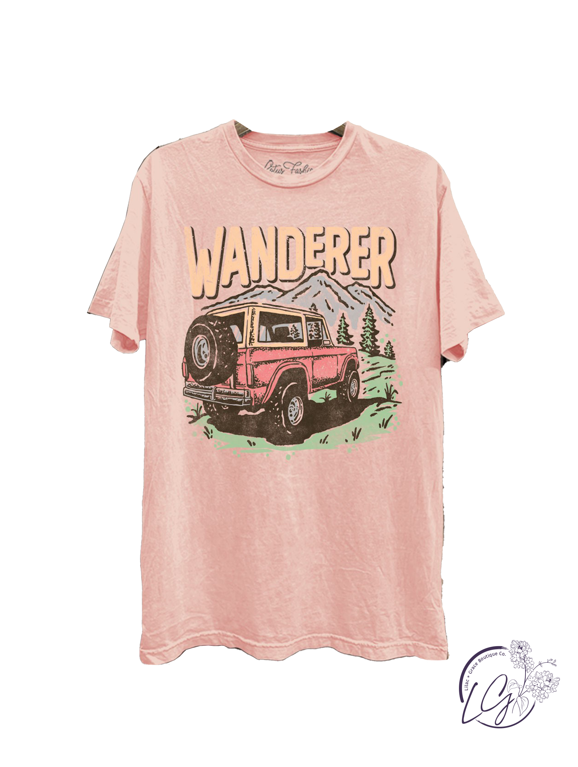 Step into adventure with our Wanderer Graphic Top! This short sleeve crew neck tee is loose in all the right places and features an open neckline with slightly dropped sleeves. Made in our soft 100% cotton fabrication, this top is perfect for any journey. Experience ultimate comfort and style with our mineral washed design.