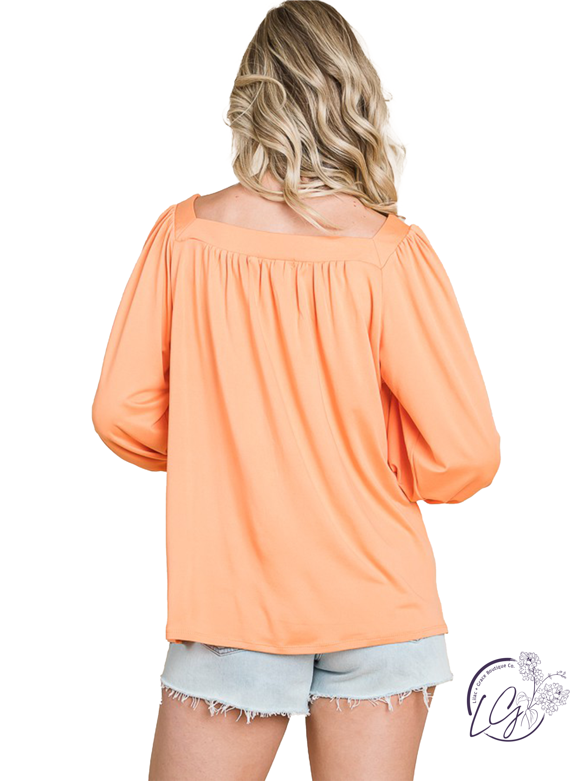 Elevate your style game with our We're Running Square Neck Flare Solid Top! The square neck adds a touch of elegance while the flare and relaxed fit provide comfort and movement. Made with 3/4 sleeves, this top is perfect for any occasion. Upgrade your wardrobe now!